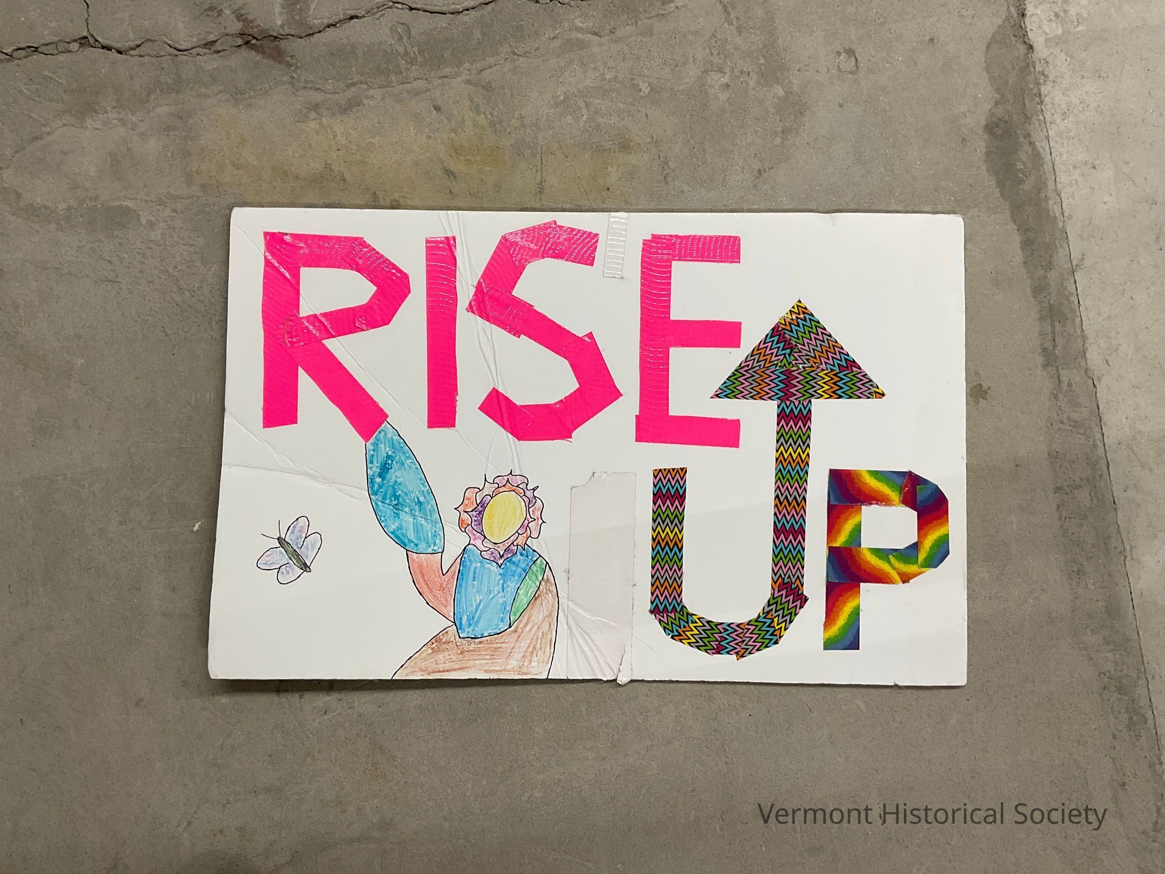 This sign was part of a women's march in Montpelier in 2017. The march was held following President Trump's election for his first term as many US citizens feared for the safety of their civil rights under his control.Acquisition
