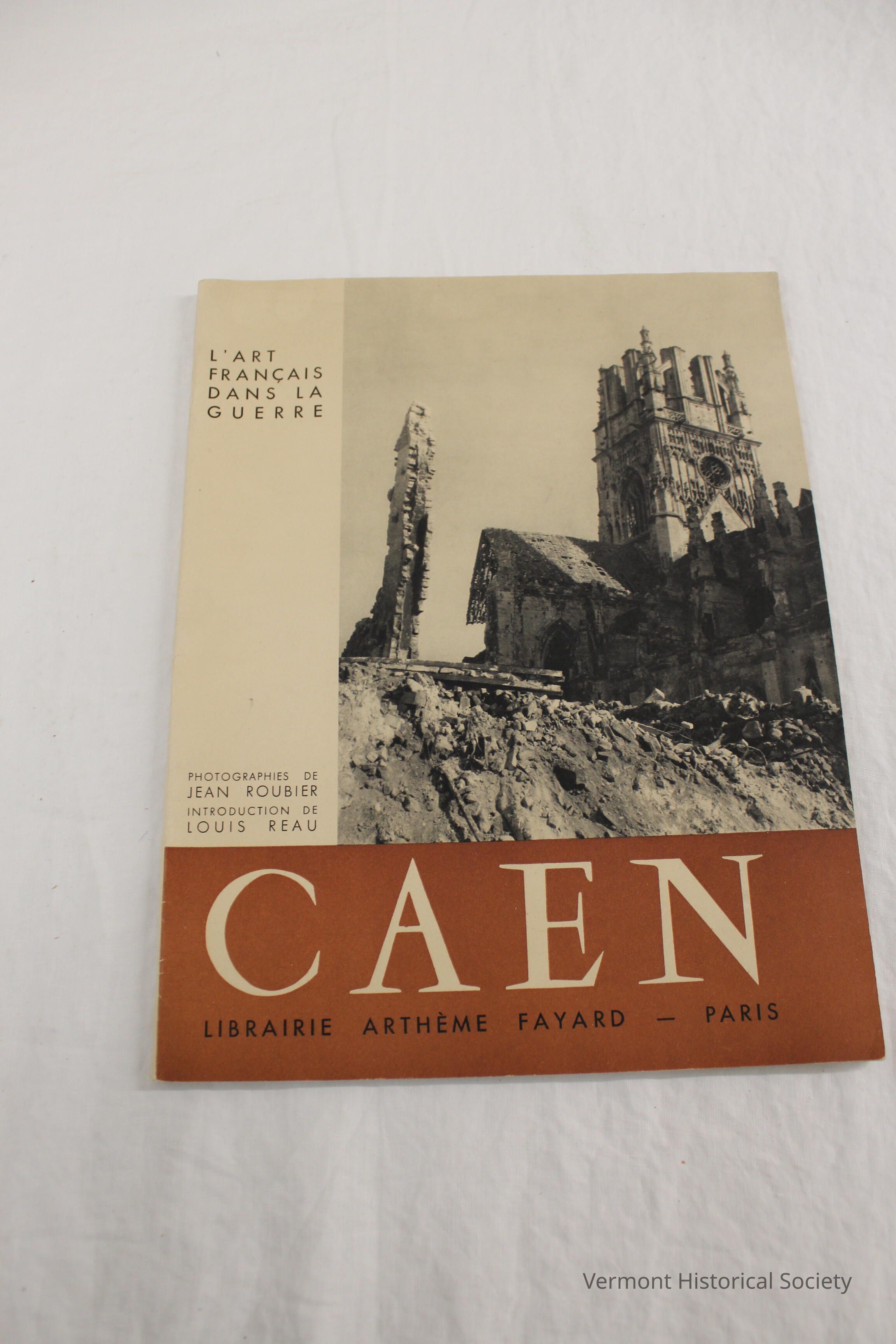 Book entitled "Caen" that describes and shows art and architecture damaged during World War II.