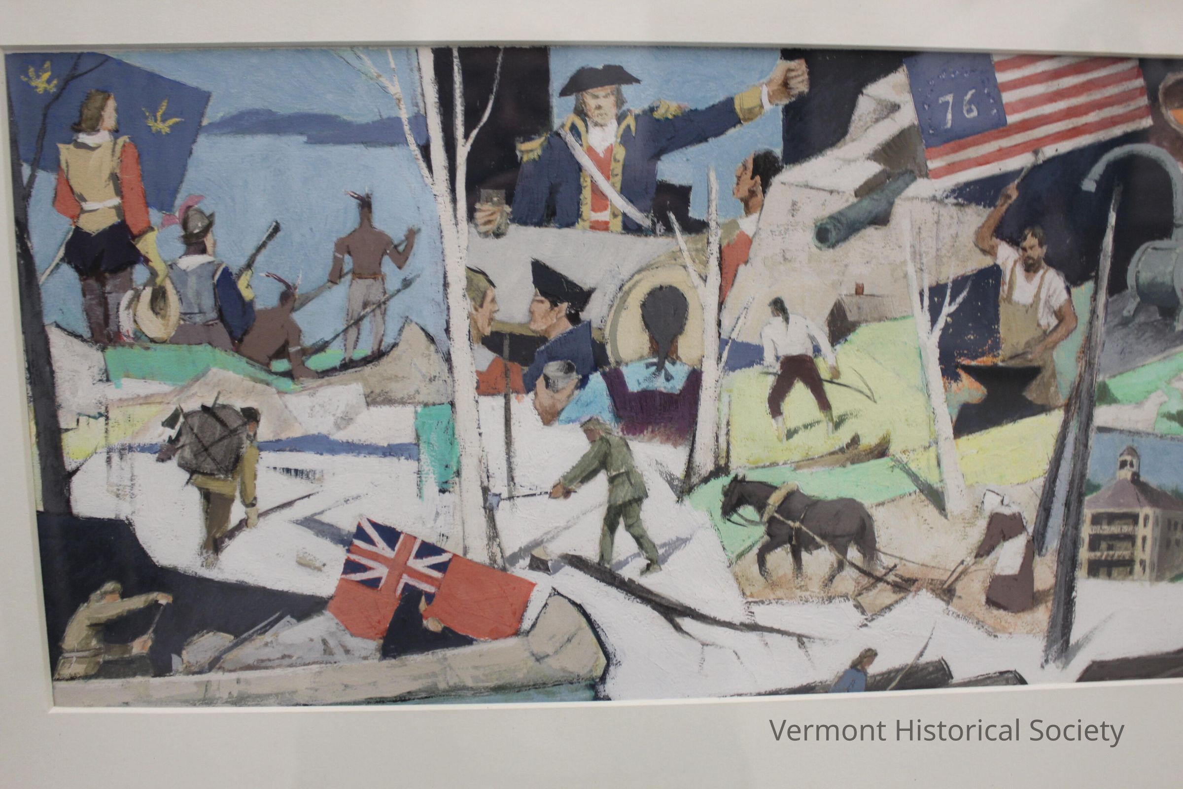 This is an acrylic study of the above mural, which is now housed in the Vermont History Museum in Montpelier.Type of Painting