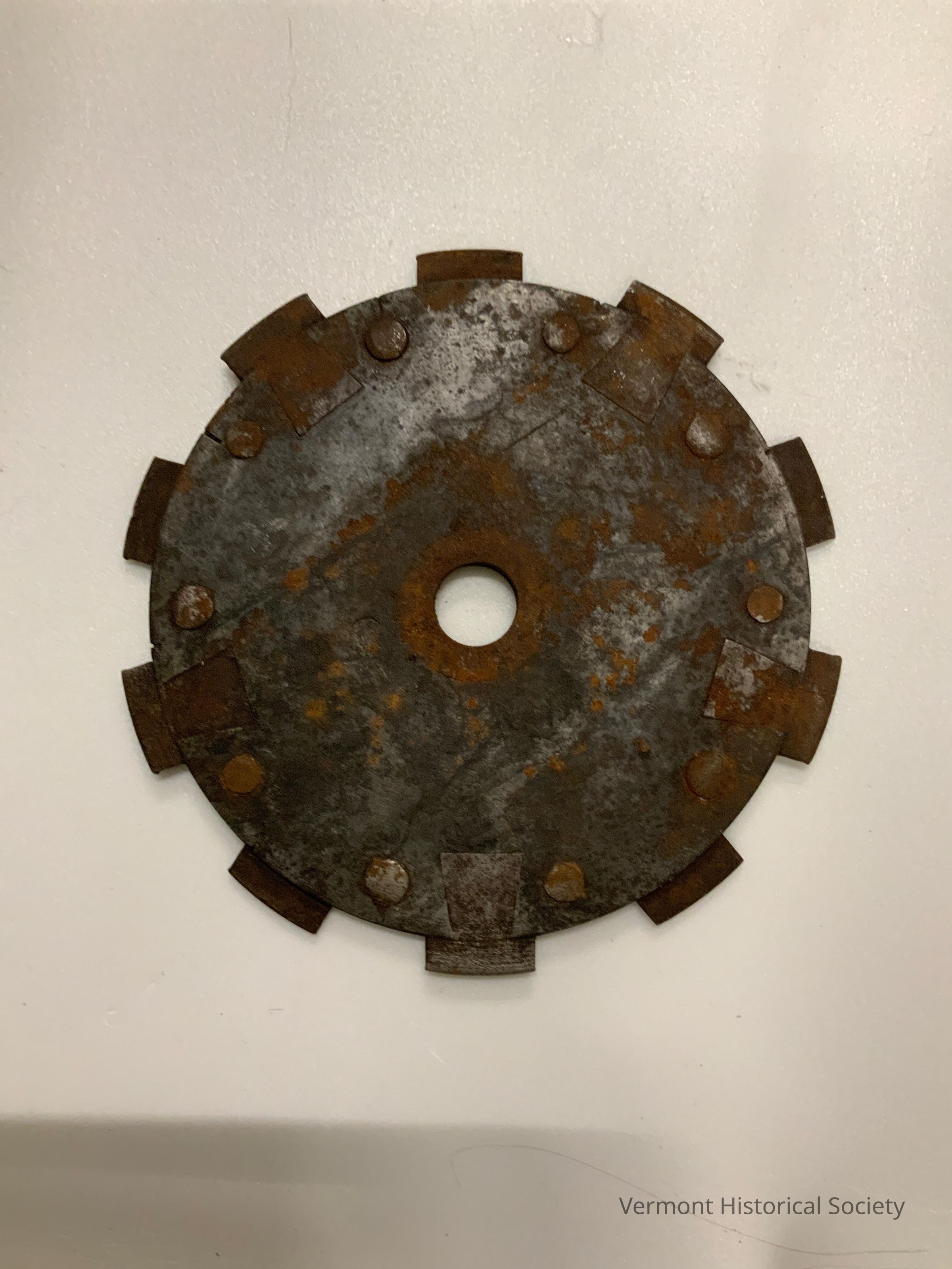 Example of the first patented circular granite saw blade. The patent was held by Lionel X. DuBois of Northfield, Vermont.