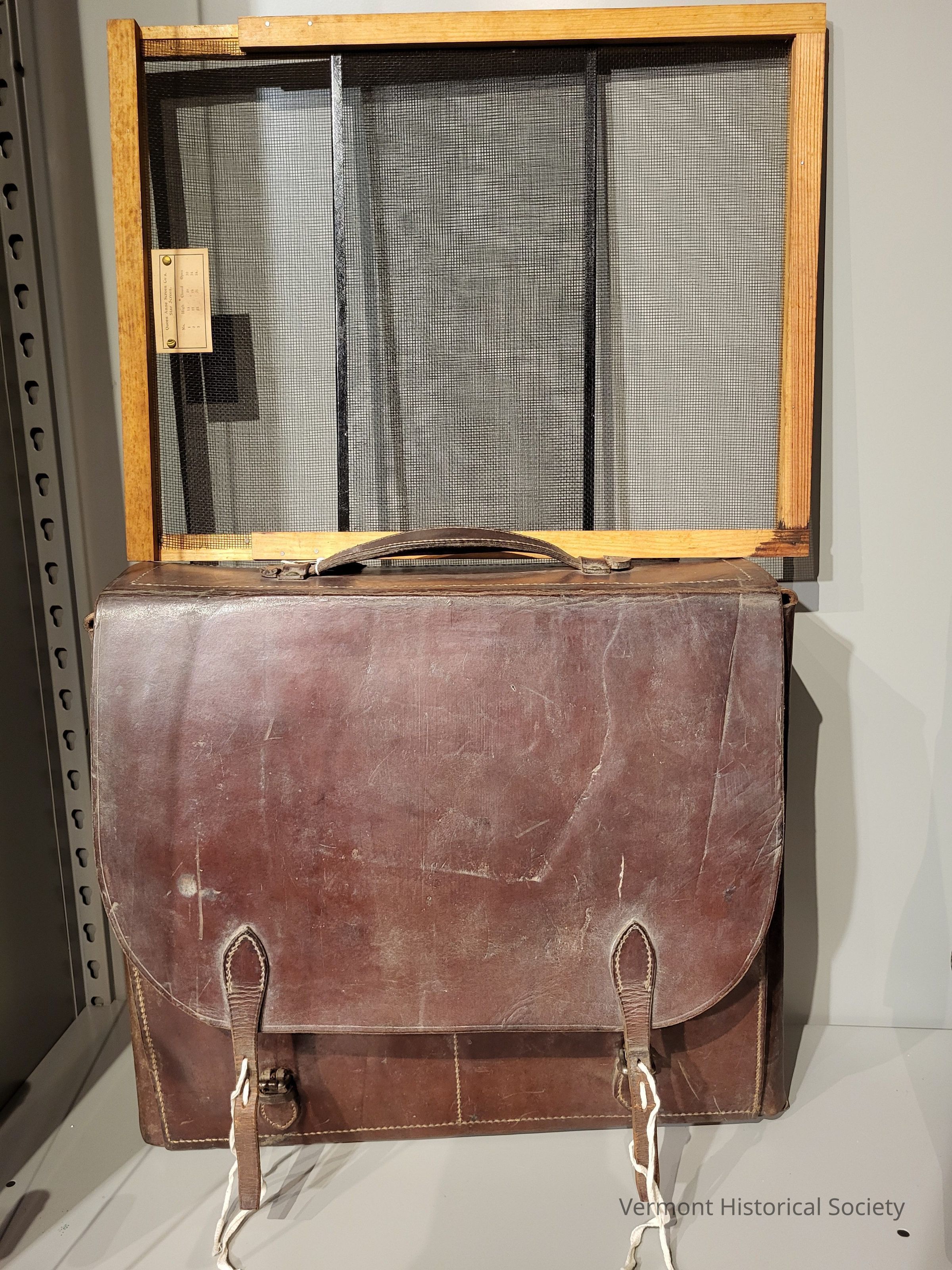According to an information sheet provided by the donor, F.P.Elwert of Rutland, the Queen Ann Screen Co. was listed as in business in Burlington in a 1906 issue of Walton's. The principals were listed as W. & D.G. Crane and E.A. Pope. The information sheet suggests that the carrying case was handmade. This salesman's kit included six models of Queen Anne Screen Co.'s screen doors and four adjustable window screens.Acquisition