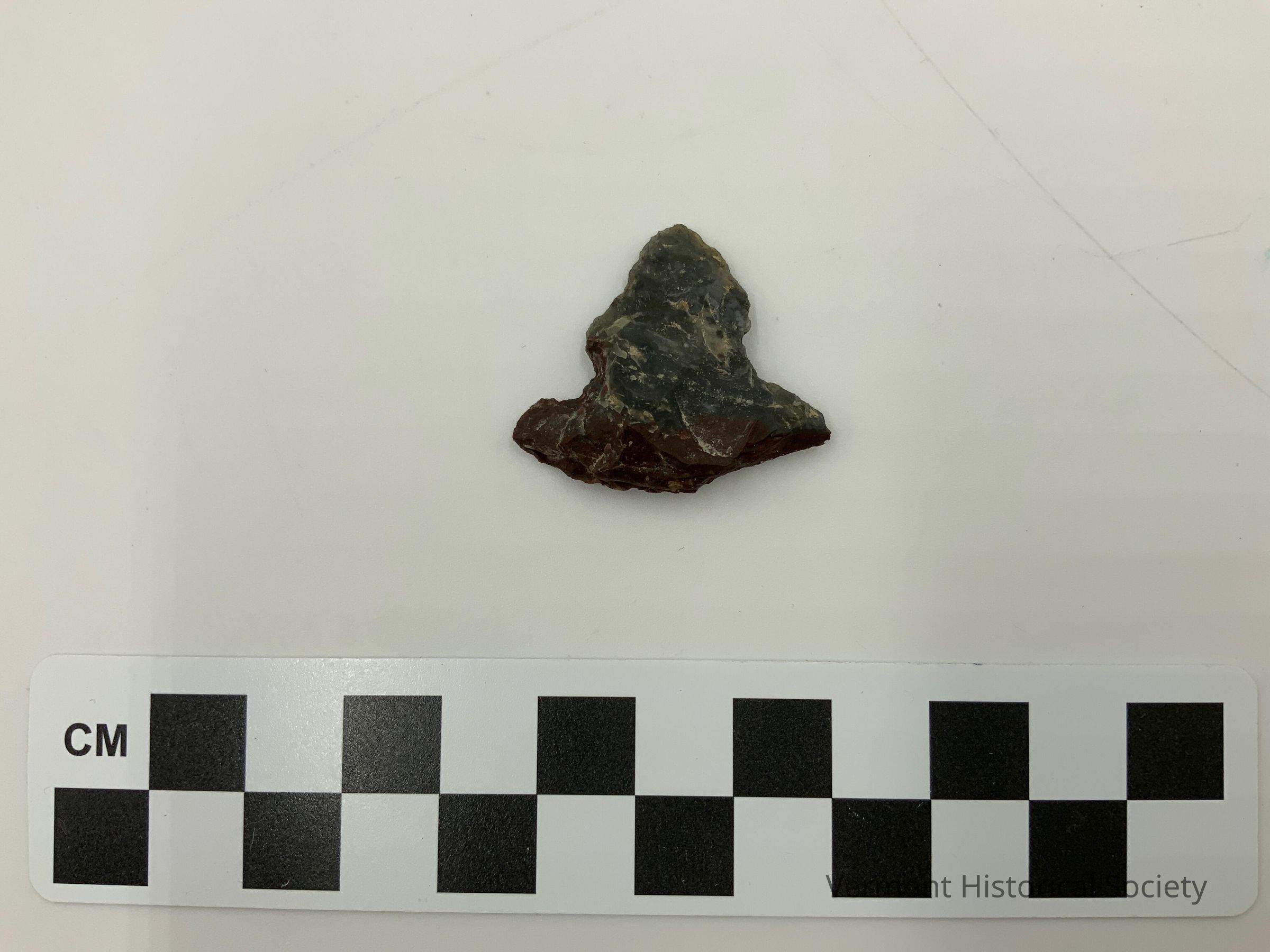 Chipped stone perforator made of black chert. The base is wide, and the point is somewhat symmetrical.Context