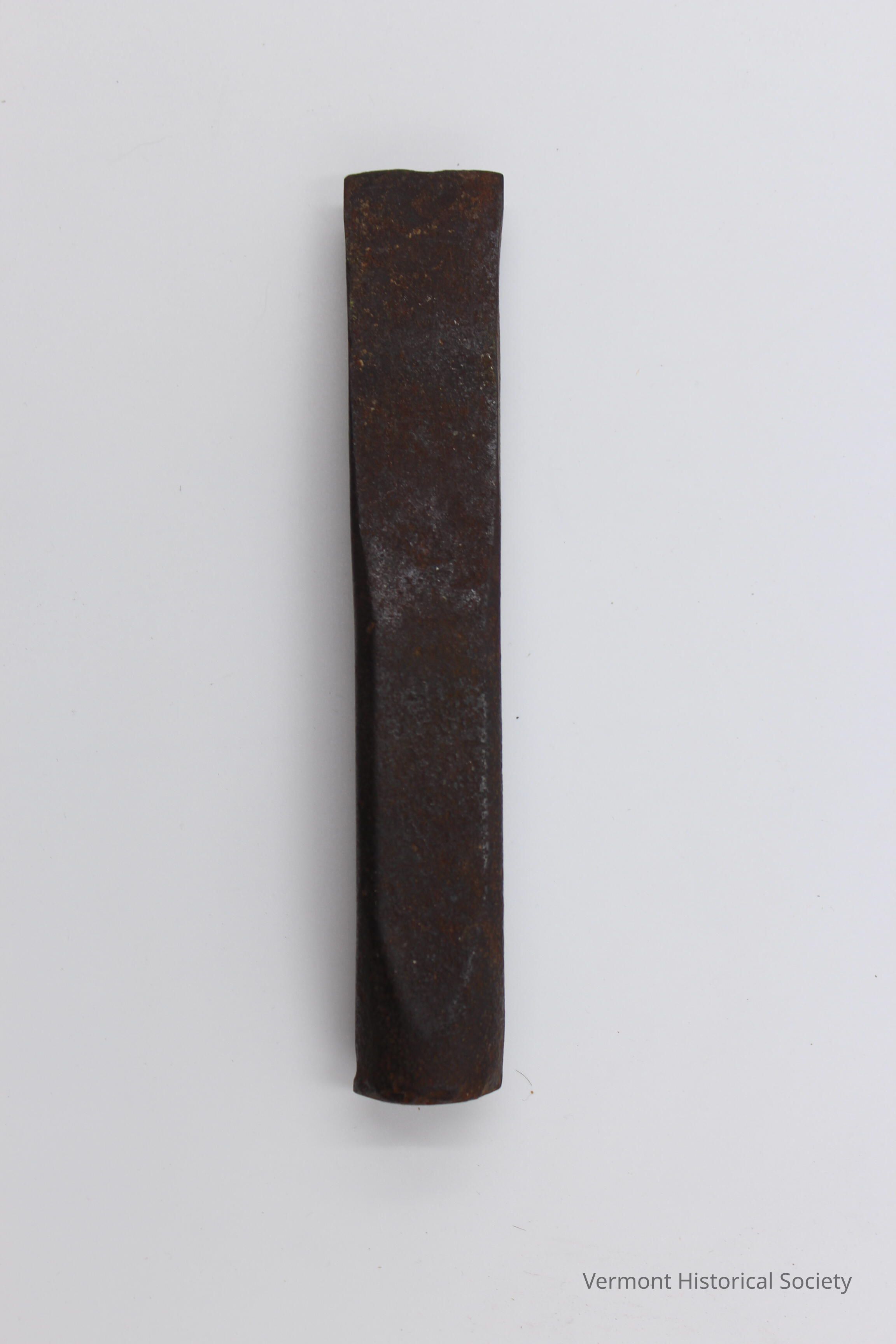 Metal wedge, possible for splitting wood. The wedge consists of a round head tapering down to a square end.Context