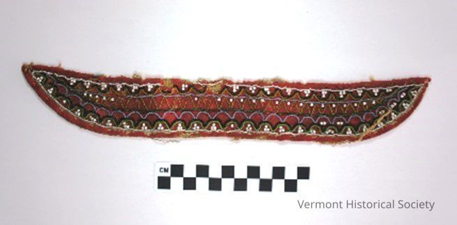 This object is tiny but is one of the few surviving pieces of late 18th century Wabanaki beadwork, and has a Swanton, Vermont provenance. It was found in the wall of a 19th century Swanton house being demolished in the early 1900’s. Ex. Ben Gravel Collection.Acquisition