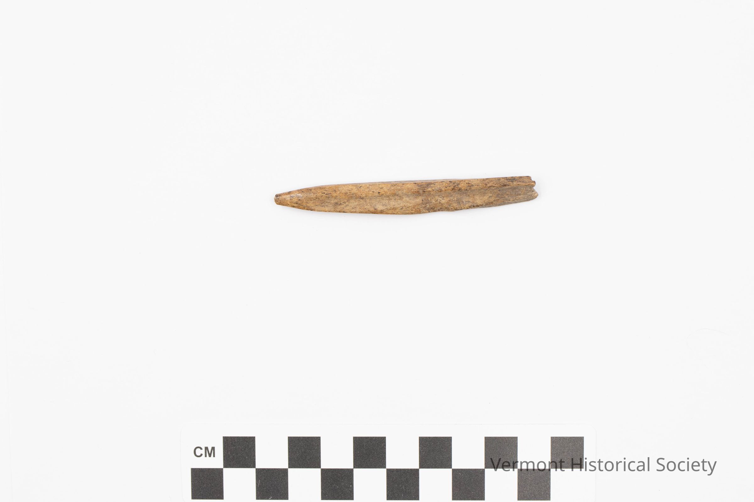 Animal bone polished to a point at one end.