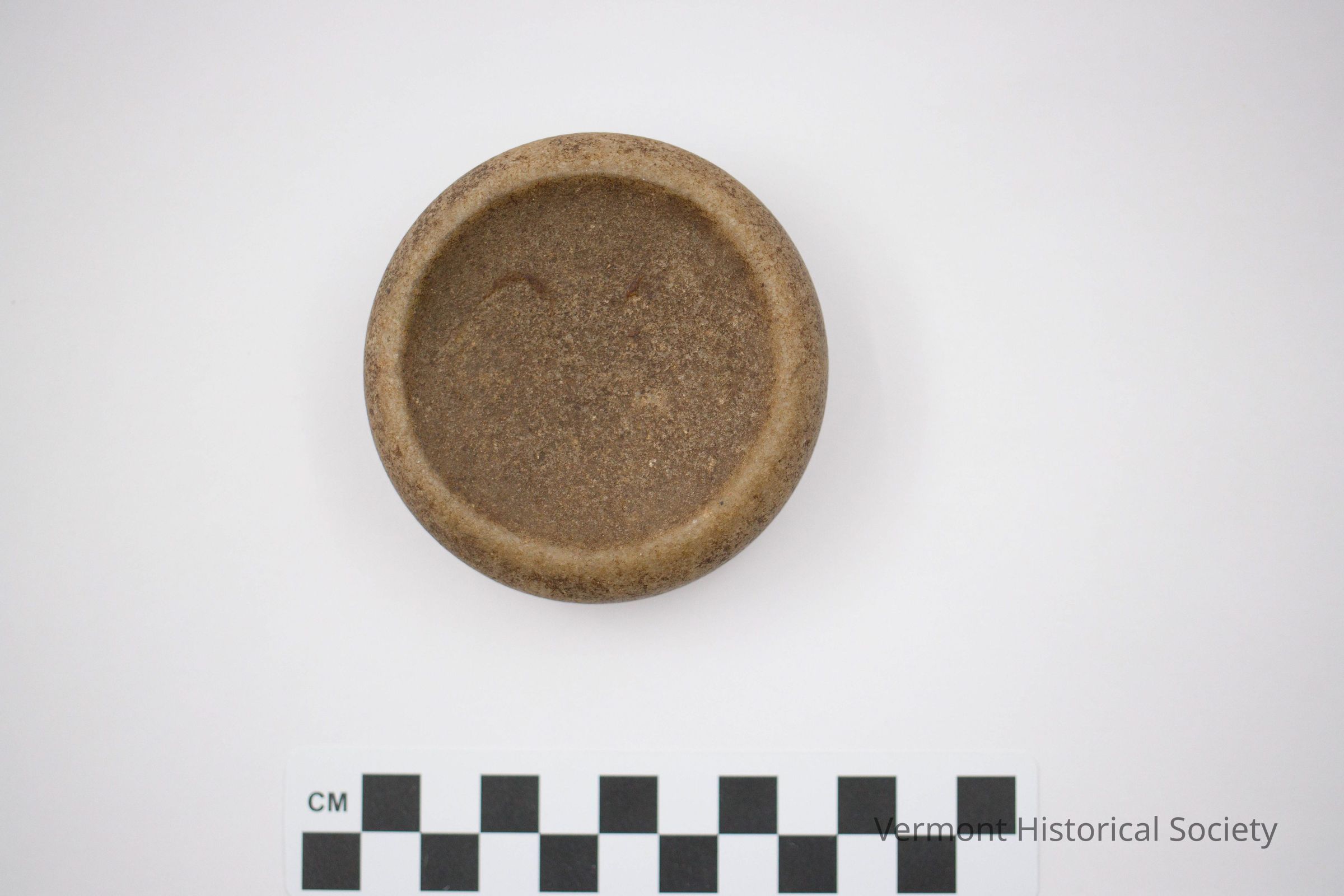 Ground and polished quartzite disc. The centers of both faces are dished.