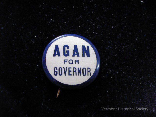 Frank Walter Agan (1869-1934) was one of four Republicans vying for the party's nomination for governor in 1920. He lost to James Hartness who was subsequently elected governor. Agan had previously run for lieutenant governor in 1902 as the Local Option candidate, but lost to Zed Stanton, a Republican. Agan was in woolen mill manufacturing in Ludlow. He had two wives, Cora, who died in the late 1890s, and then Maria.