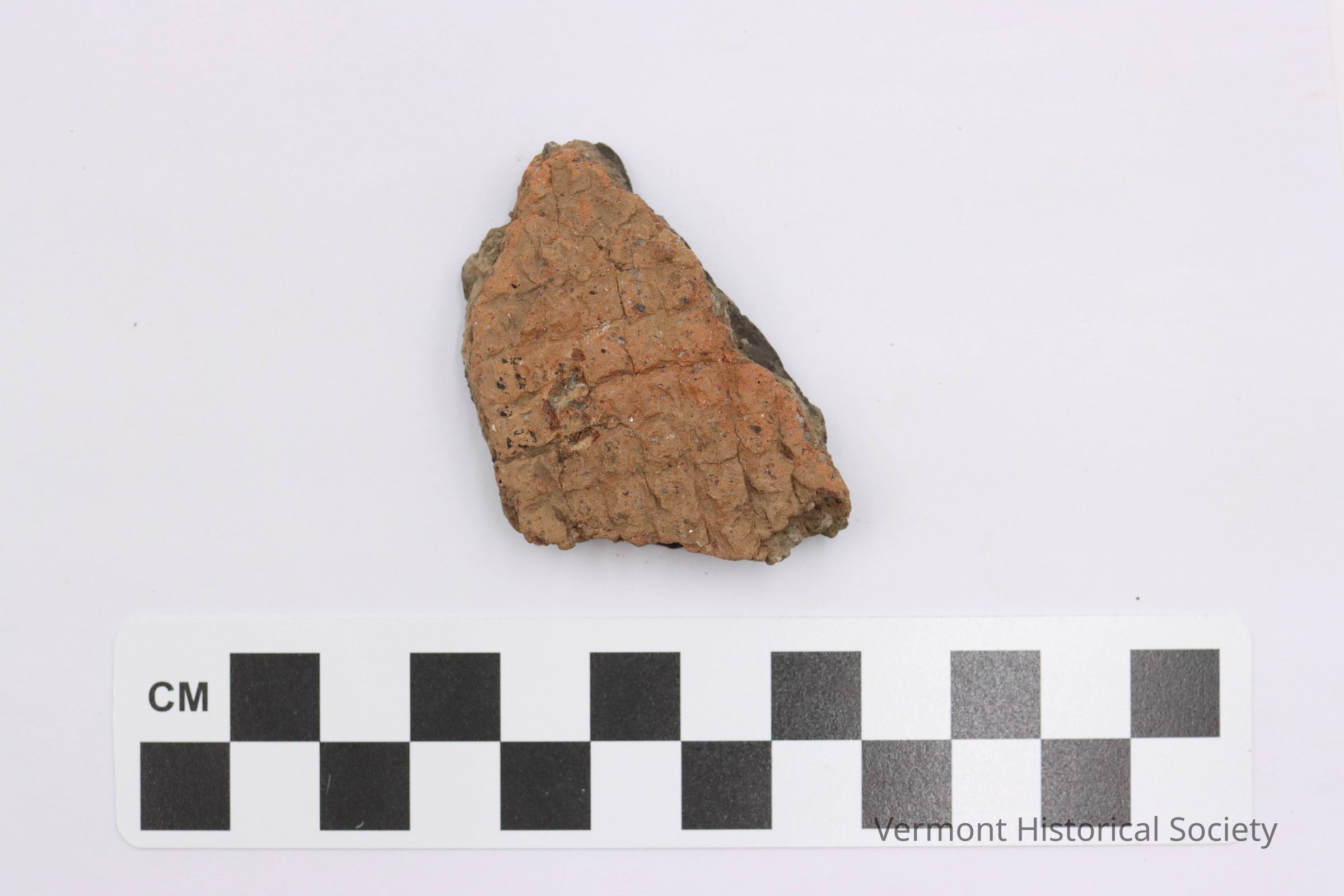 Pottery sherd with the impression of a net pressed into the exterior surface.