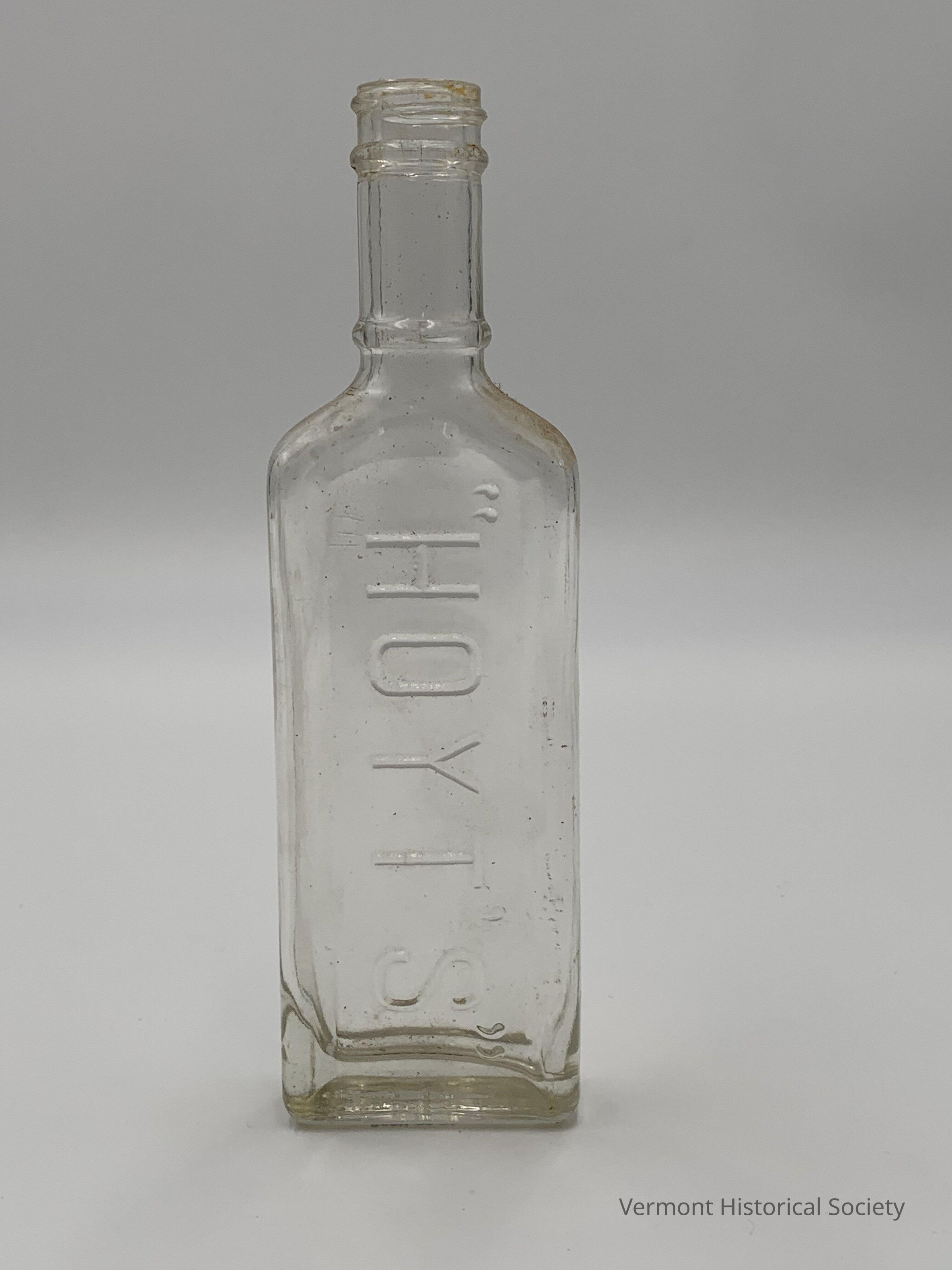 Clear glass bottle with the molded inscription, “HOYT'S".