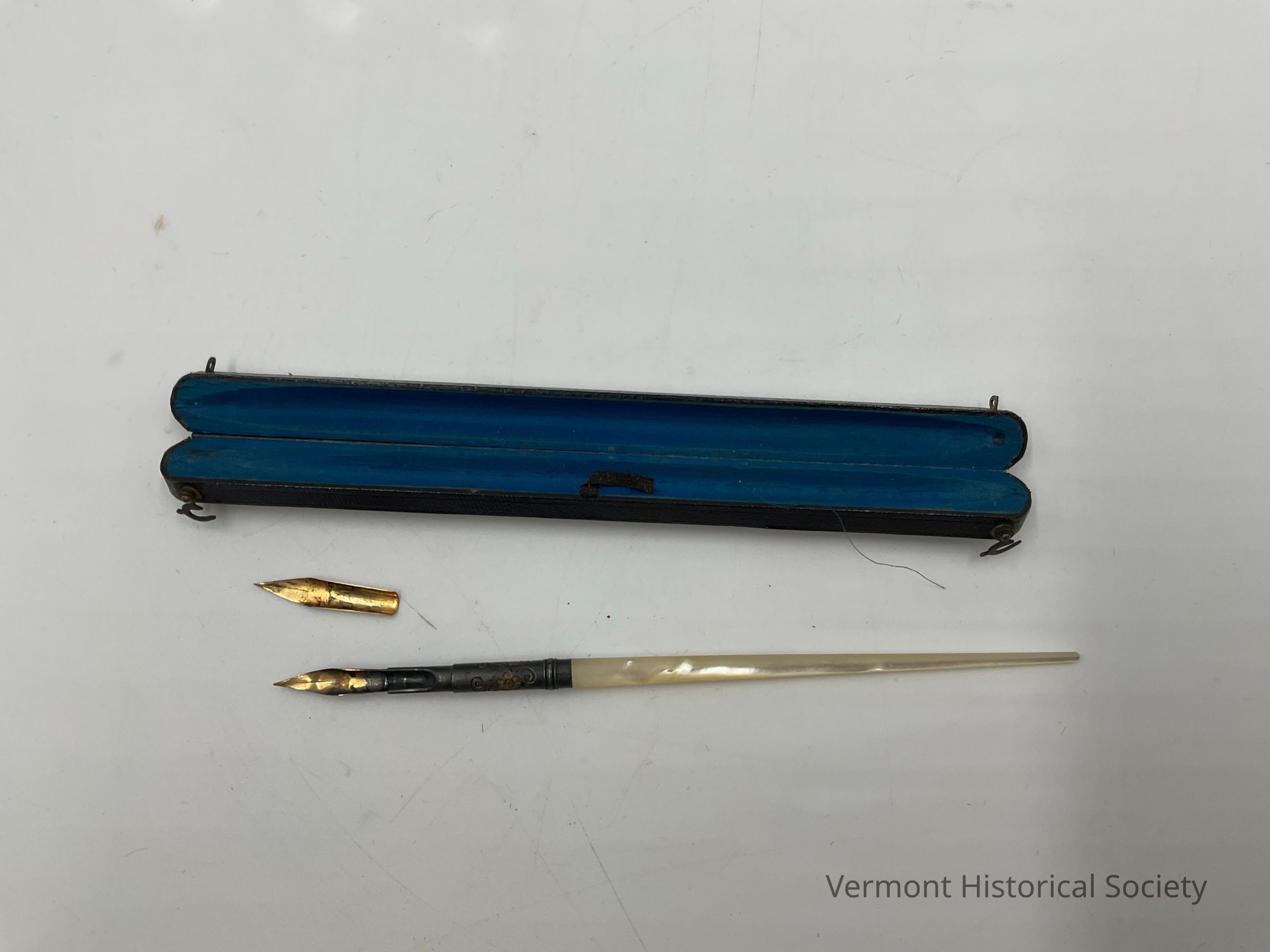 This pen is said to have belonged to Frank C. Partridge (1861-1943). He was born in East Middlebury, and graduated from Amherst College in 1882 and Columbia Law School in 1884. He was appointed U.S. Senator from Vermont (1930-31) to serve out the term of Frank Green who had died in office. He was chairman of the board of the Vermont Marble Co. in Proctor. he was on the board of directors of National Life Insurance Co. and the Rutland Railroad and a trustee of Middlebury College.Acquisition