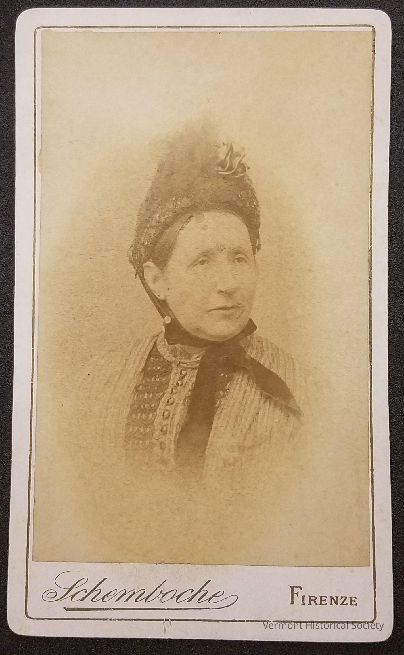 The daughter of Benjamin Crane of Berkley, Massachusetts, Caroline Crane married George Marsh in 1839, five years after the death of his first wife. In 1849, President Taylor named Mr. Marsh Minister to Turkey, so the family moved to Constantinople. Caroline Marsh suffered from poor health (she may have suffered from a stroke), but this did not stop them from traveling extensively. After a brief stint in Greece, the couple returned to Vermont in 1854 and stayed until 1861, when President Abraham Lincoln named Mr. Marsh the American Minister to Italy. Mr. Marsh remained in Italy until his death in 1882.