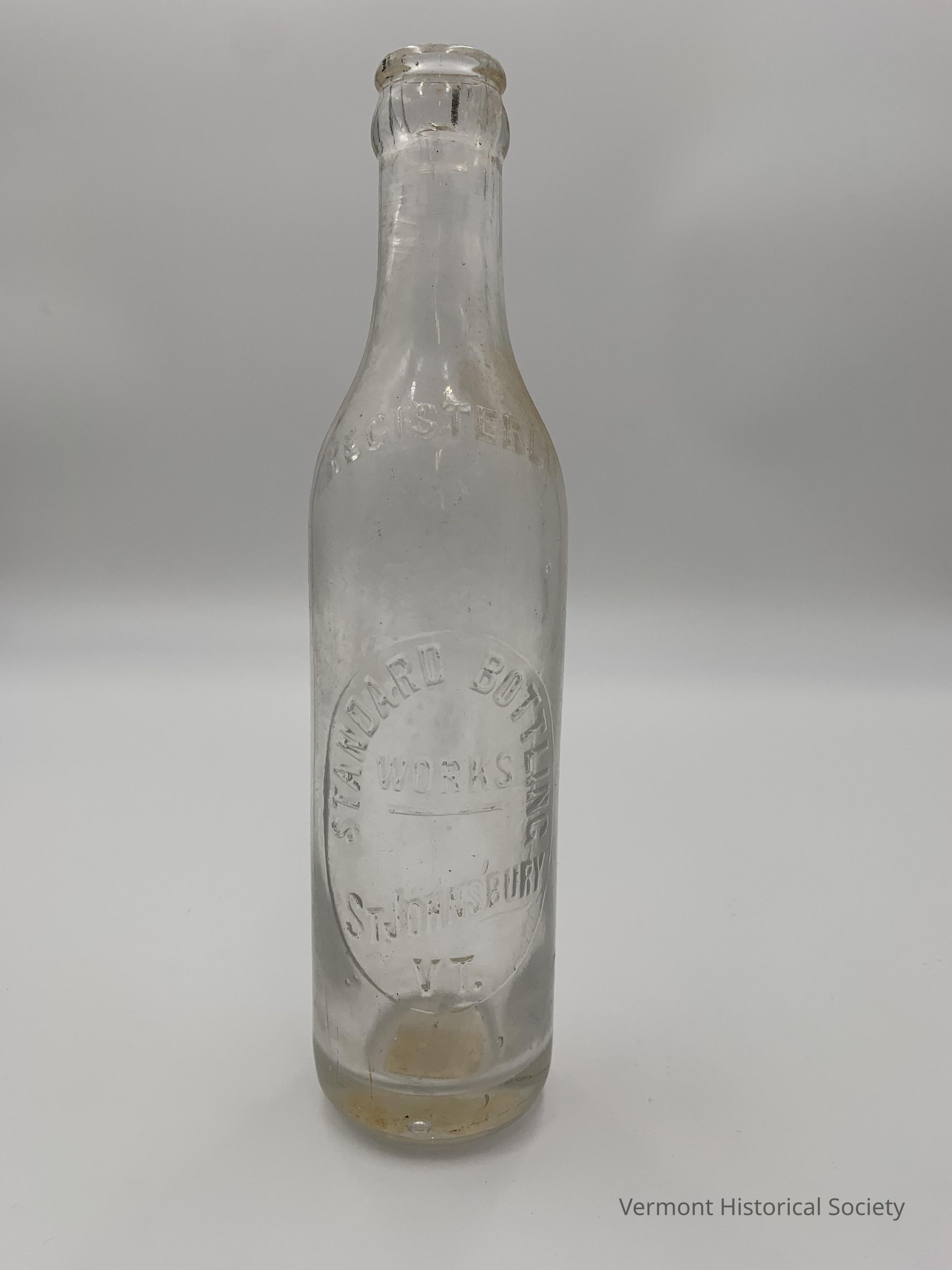 Clear glass soda bottle molded with the inscription, “STANDARD BOTTLING WORKS ST. JOHNSBURY, VT."