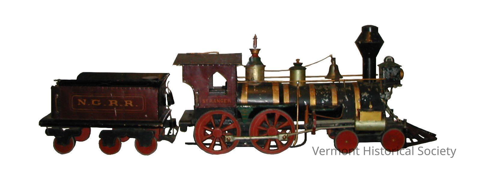The model is of the locomotive, "Stranger", which operated for the Vermont Central Railroad starting in 1852. This model was made by Alfred E. Butterfly in 1877.Acquisition