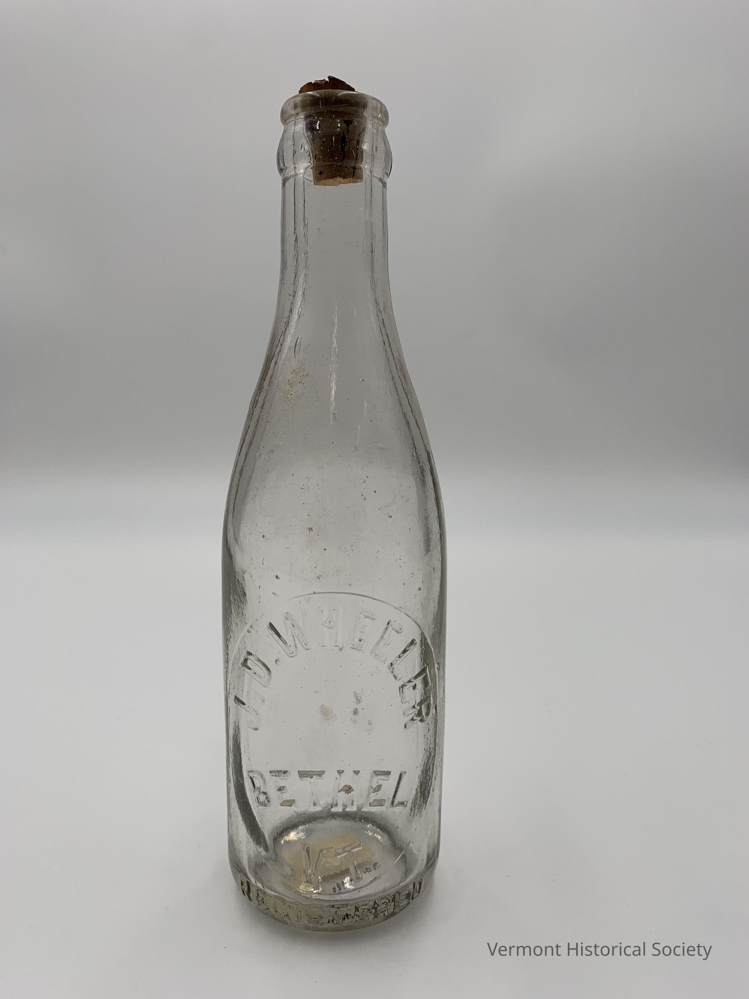 Clear glass soda bottle molded with the inscription, “J. D. WHEELER BETHEL VT."