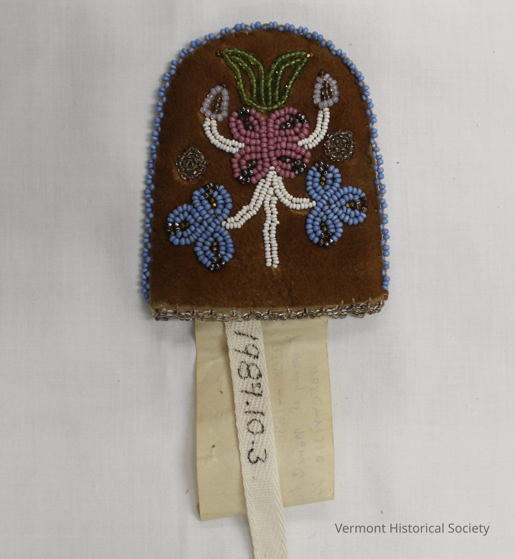 This small beaded case bears witness to this partnership with a beautiful Abenaki work of art designed to hold a European navigation device. The provenance of this item helps document an Abenaki community in the Waterville area in the first half of the 19th century as well as providing an example of stylistically distinct beadwork motifs.Acquisition