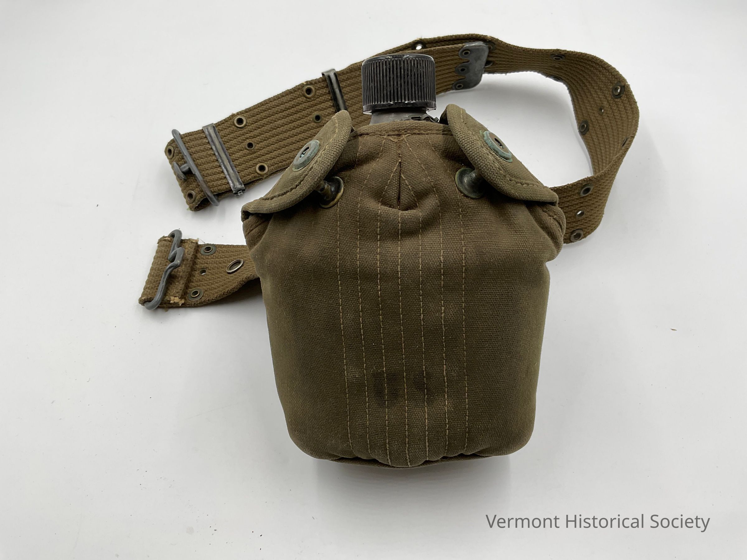 This canteen was among the WWII equipment used by Lawrence Rossi (1918-2025) of Barre during his three years of service in the Pacific Theater. Rossi served in the Army as a 1st Lieutenant with the 172nd Infantry. After he was discharged in 1946 he continued to serve in the Vermont National Guard and was reactivated to serve in the Korean War. He retired as a Major from the Vermont National Guard in 1963.Acquisition