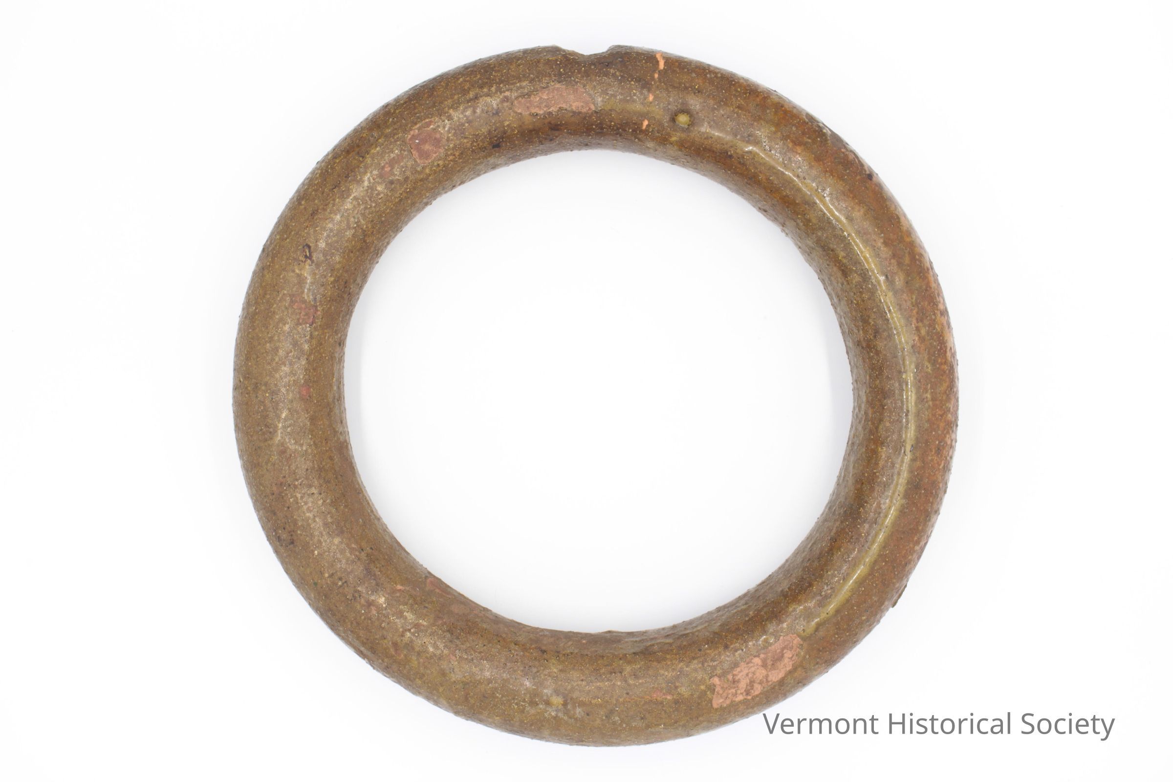 Ring-shaped ceramic flask or canteen. The neck at the opening is broken off.