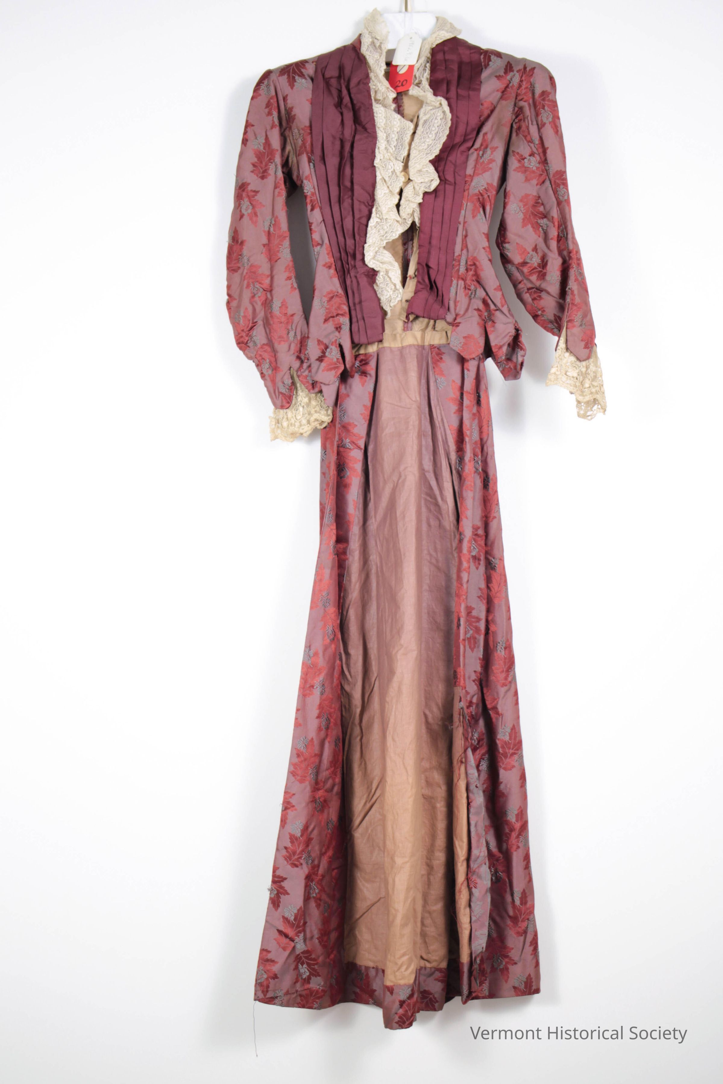 Made and worn by Eliza Dumas of Northfield, VT, for her marriage to Raphael Lanier on October 14, 1884. Eliza was a well-known dressmaker in Barre, Vermont.Acquisition