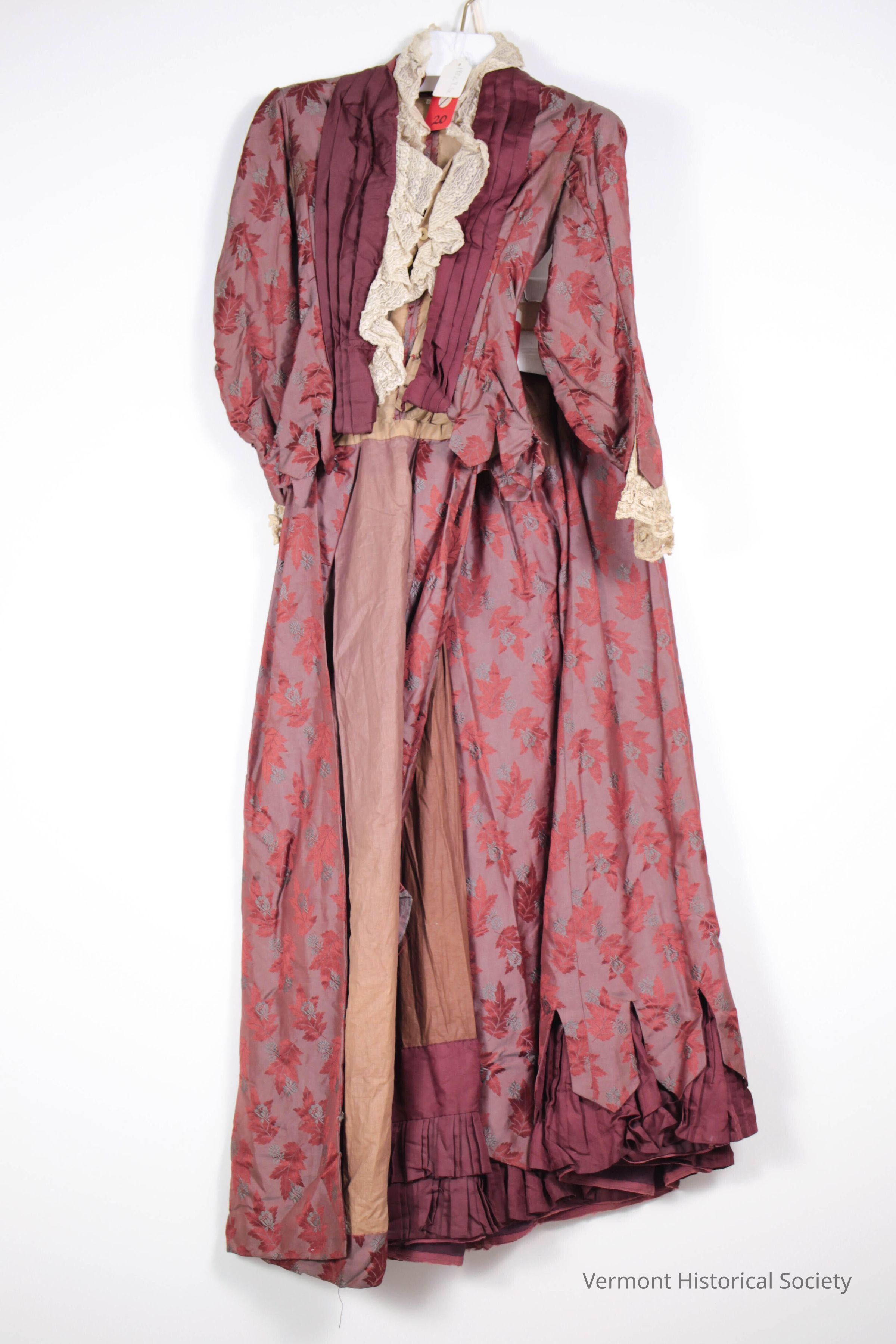 Made and worn by Eliza Dumas of Northfield, VT, for her marriage to Raphael Lanier on October 14, 1884. Eliza was a well-known dressmaker in Barre, Vermont.Acquisition