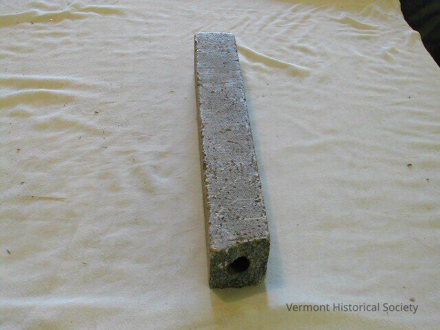 Quarried and manufactured in Grafton, likely by Butterfield and Smith. This was part of the watermain in the village of Cambridgeport, VT.