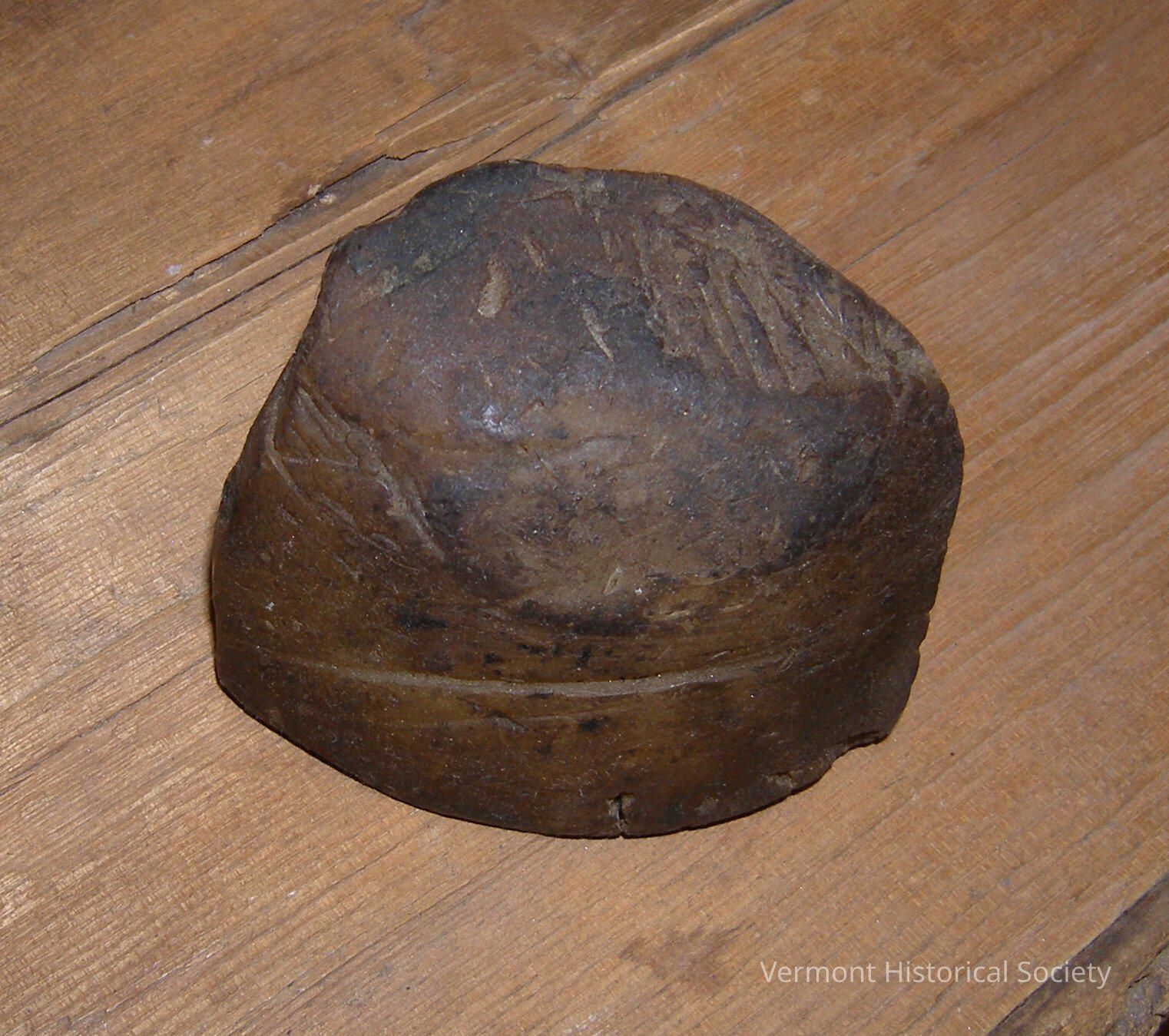 Irregularly shaped lump of beeswax. The wax is incised in several places across the top from waxing thread.Context