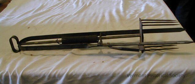 Metal mole trap. The trap consists of a U-shaped frame with a spring-loaded central pole. At the bottom end up the pole is a rectangular attachment with 6 sharp tines.