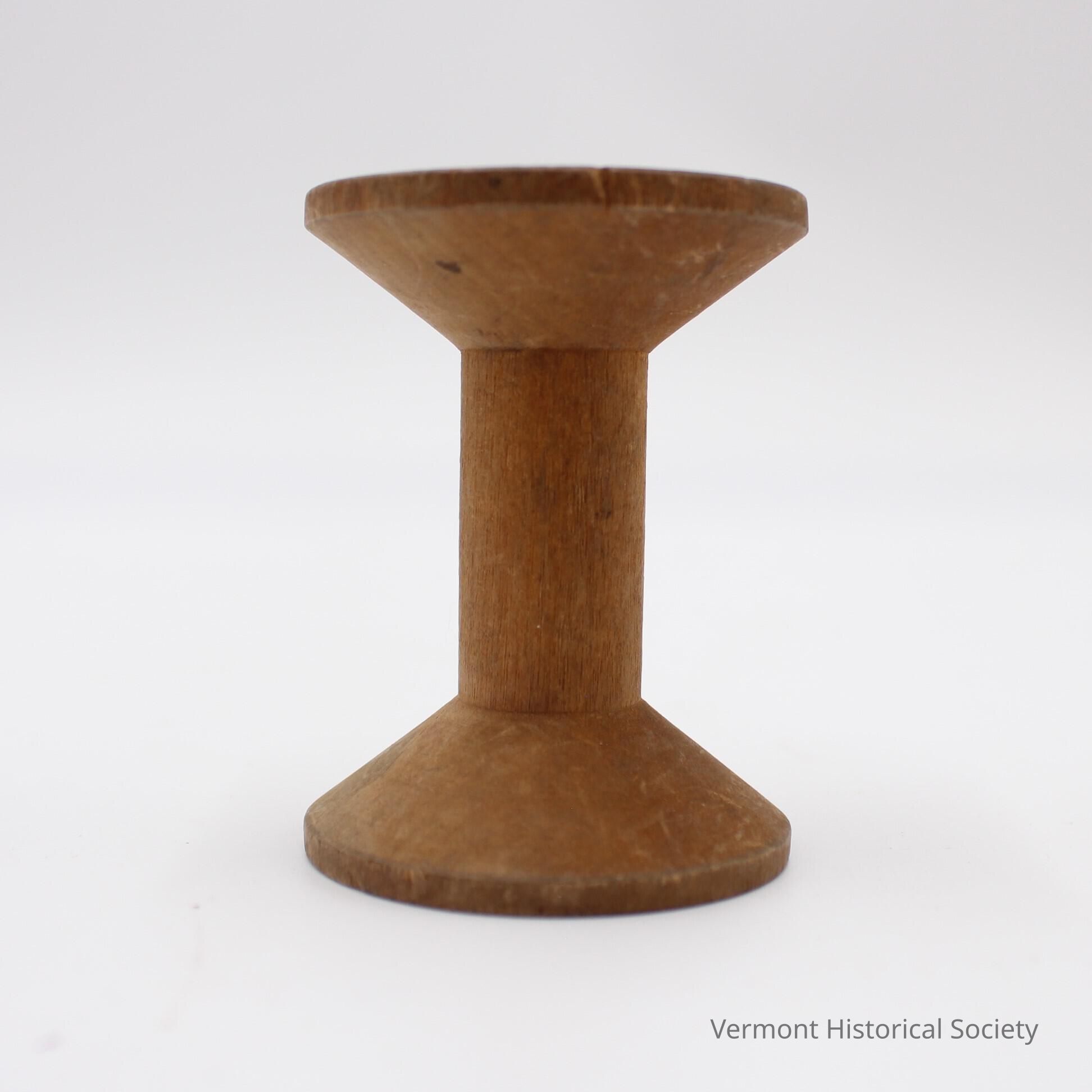 Unfinished wooden thread spool. One end is impressed with "WARRANTED/2400 YDS" and the other is impressed with "J. & P. Coates/BEST SIX CHORDS".
