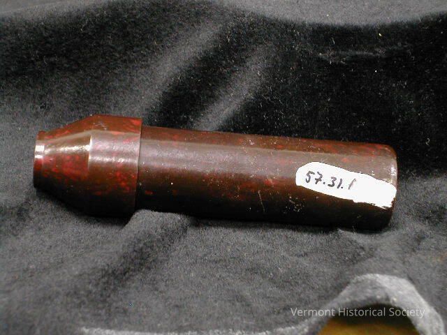 Copper colored, hard plastic flashlight; has bulb but no batteries.