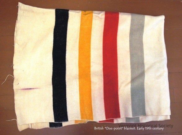 This very well preserved “point blanket” was found in Stowe, Vermont and is exceedingly interesting. First, although well preserved, it had much of the wool nap worn from it compared to standard Hudson Bay and Whitney blankets that commonly came out of closets and cedar chests in turn of the century camps along Lake Champlain. Second, the “point” was inked in with indigo, indicating that the value could be assigned by the trader, something never seen in the later 19th and 20th century “Point” blankets. This was evidence of antiquity.Acquisition