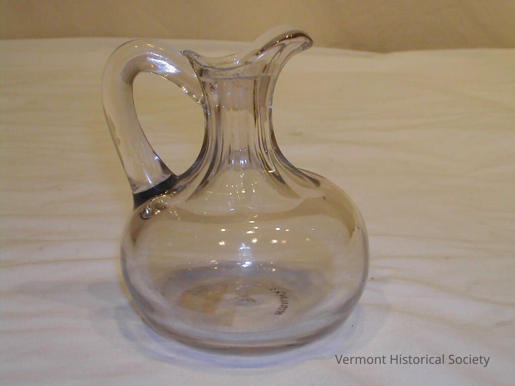 Undecorated clear glass cruet with no stopper. It is mold blown.
