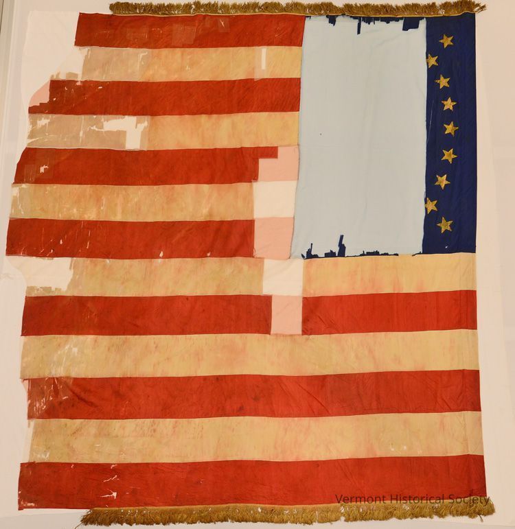 17th Vermont Infantry Regiment national flag. Red and white stripes. Blue canton.