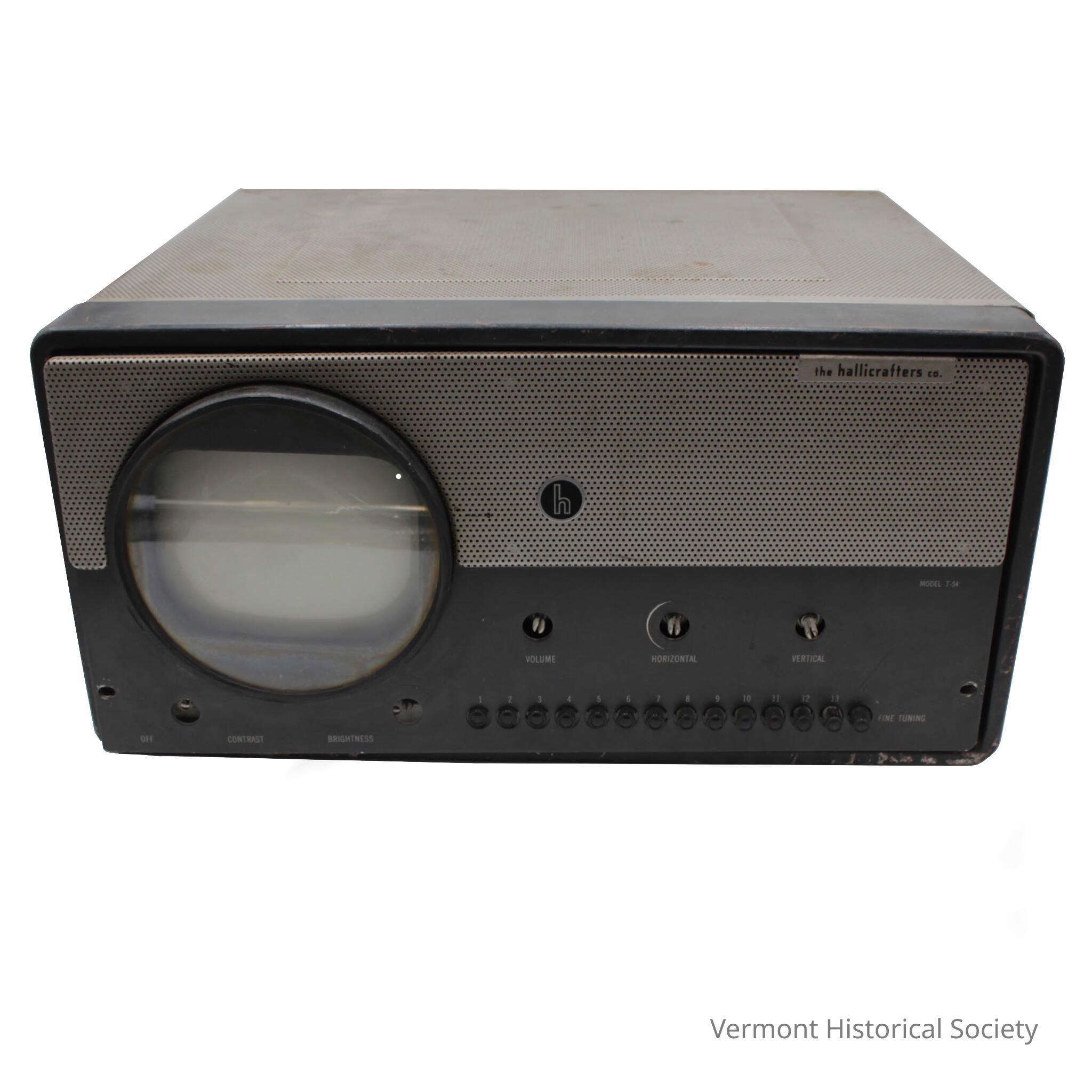 Television was not invented in Vermont, but when it arrived on the scene many Vermonters were eager to experiment with the new technology. George Dilley, owner of a radio store in St. Johnsbury, was one of them. He carried this Hallicrafter television - reportedly one of the first in Vermont - to the top of Burke Mountain in an attempt to get a signal strong enough watch a Boston Braves game in July 1948. He was partially successful; he and his family could hear the baseball game, but the picture that came through was of a trapeze artist at a circus. The baseball game, broadcast from Boston, was crossing paths with a signal from Schenectady, NY on the same channel.