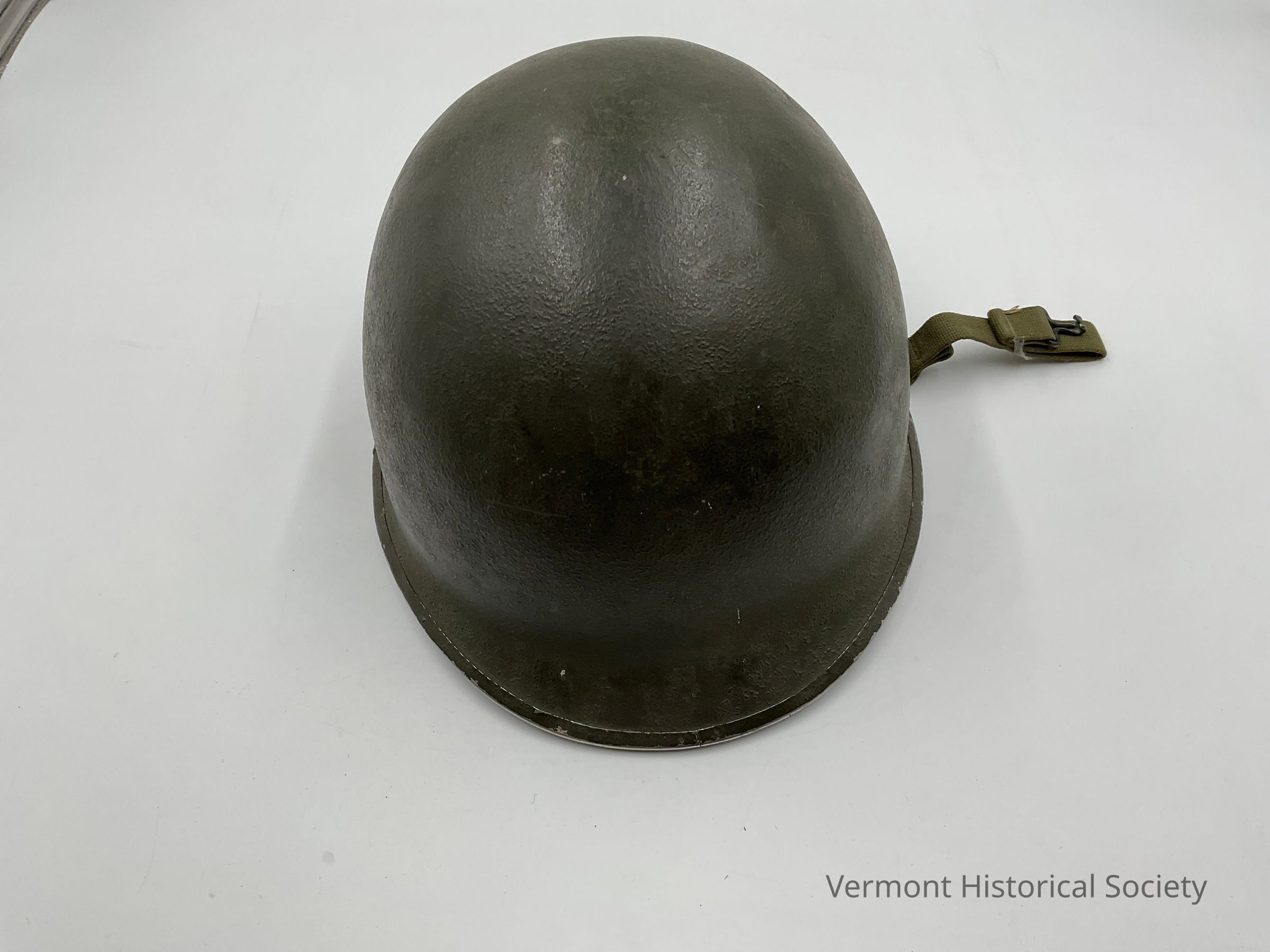 This helmet was worn by Lawrence Rossi (1918-2025) of Barre during military service. He spent three years in the Pacific Theater during WWII, serving as a 1st Lieutenant with the Army's 172nd Infantry. After he was discharged in 1946 he continued to serve in the Vermont National Guard and was reactivated to serve in the Korean War. He retired as a Major from the Vermont National Guard in 1963.Acquisition