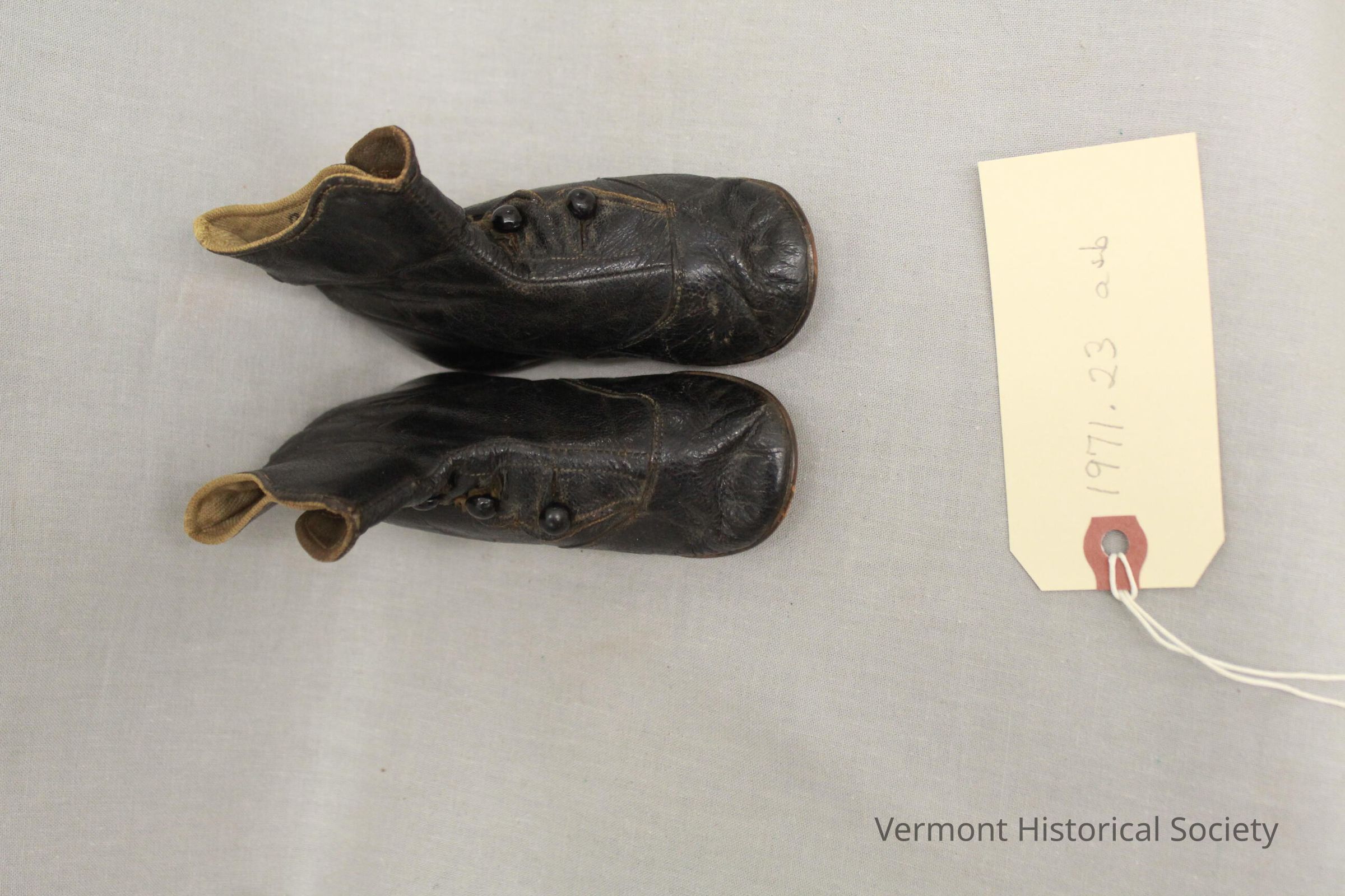 First walking shoes worn by Judge Walter H. Cleary of Lyndon, Vermont. Cleary went on to become Chief Justice of Vermont Supreme Court.Acquisition