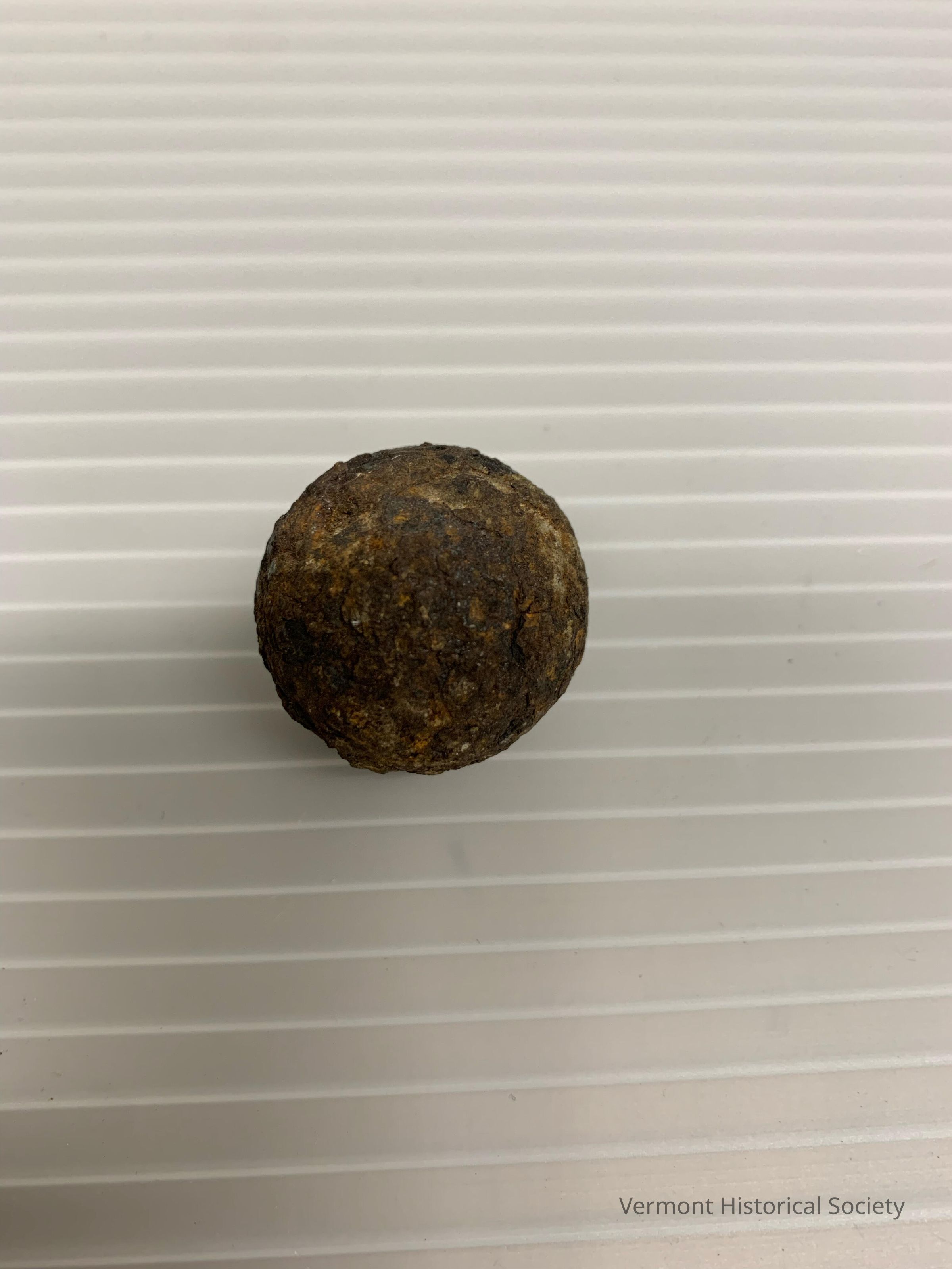Round iron cannonball.