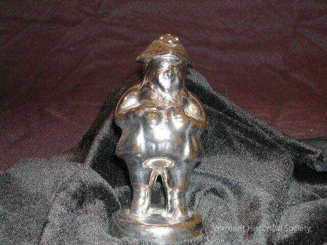 Silver lustered ceramic saltshaker or caster in the form of a man.