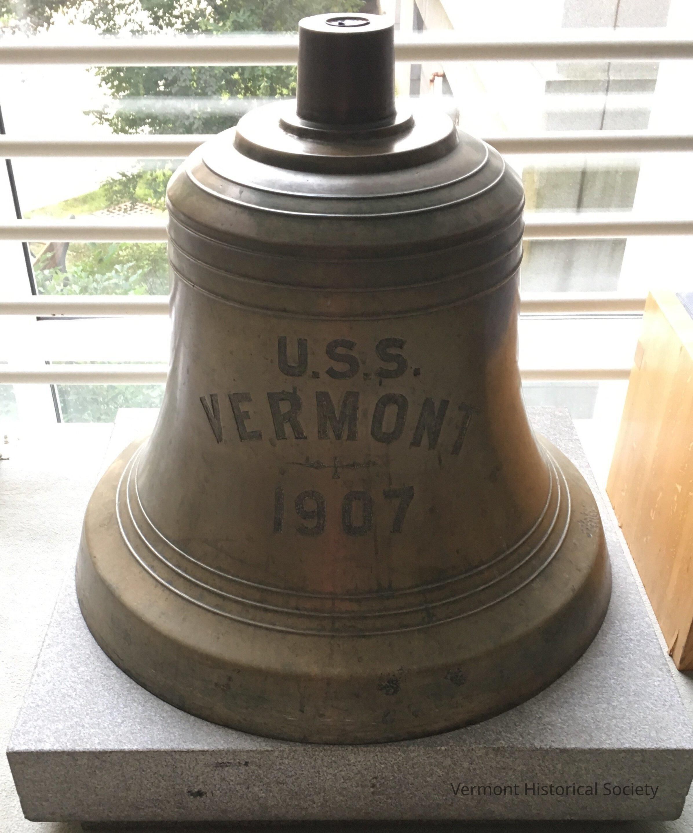 Large brass bell engraved with the words, "U.S.S. VERMONT 1907".