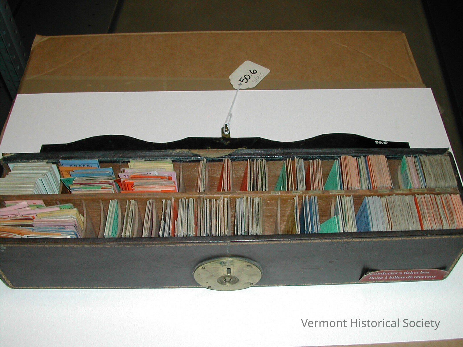 Used to collect train tickets from passengers on the Vermont Central Railroad.Context
