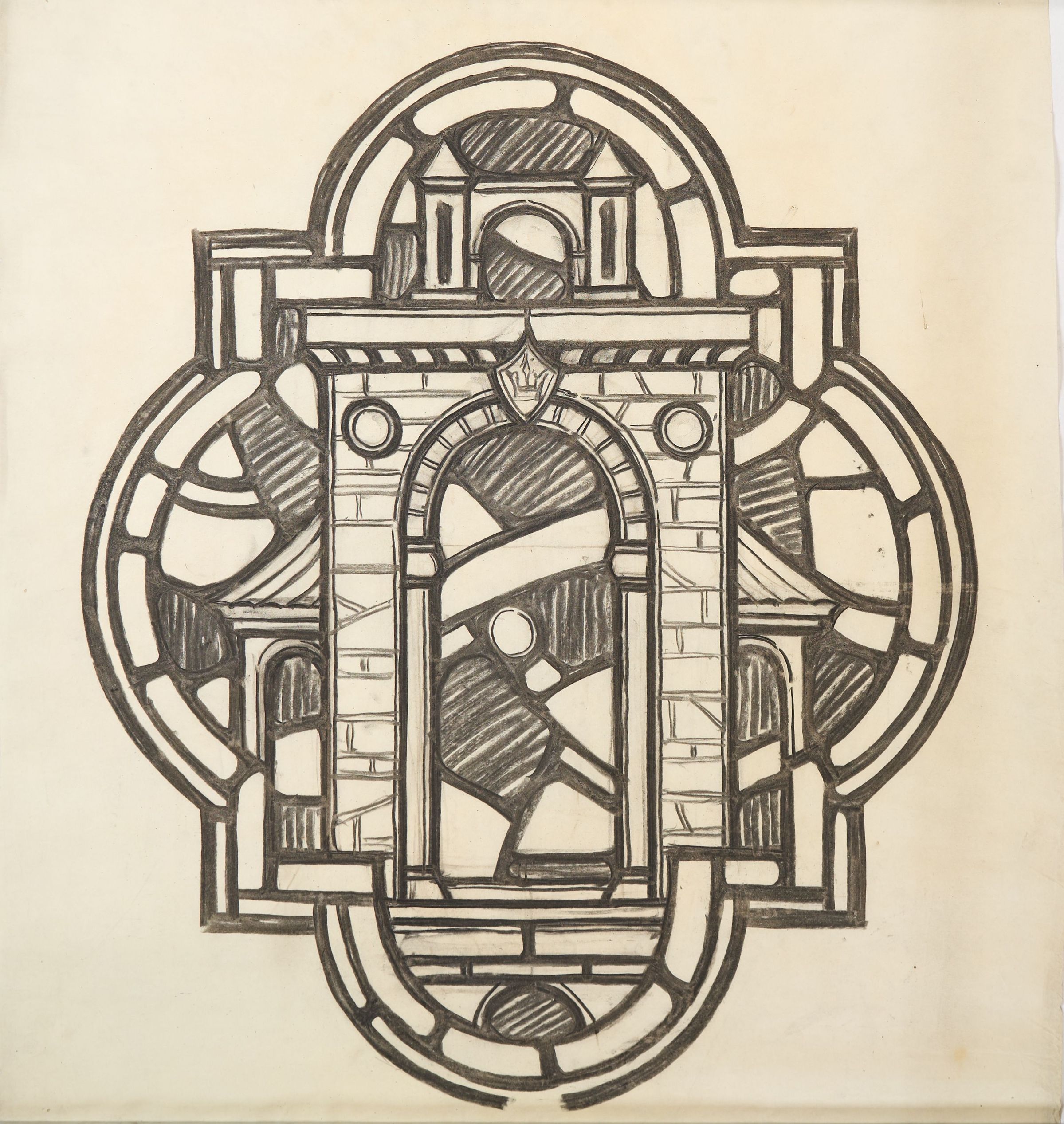 Stained glass scale cartoon, possibly St. Anne's Church in Bristol, VA. Depicts a gate.Type of Drawing
