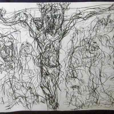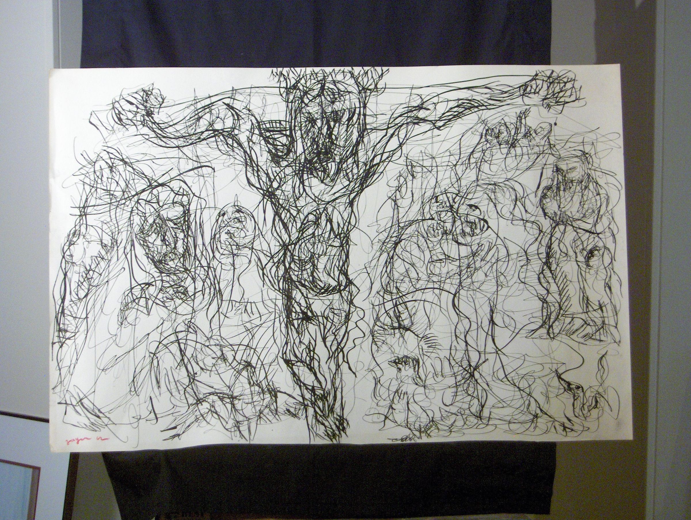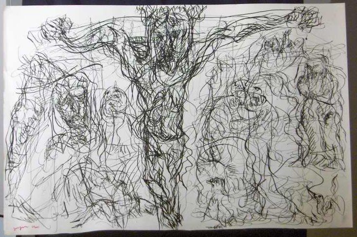 Ink, Paper, Drawing, Zagar, Irwin, Irwin Zagar, Zagar, Abstract, Christ, Crucifixion, Ink, Paper, Drawing
