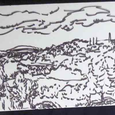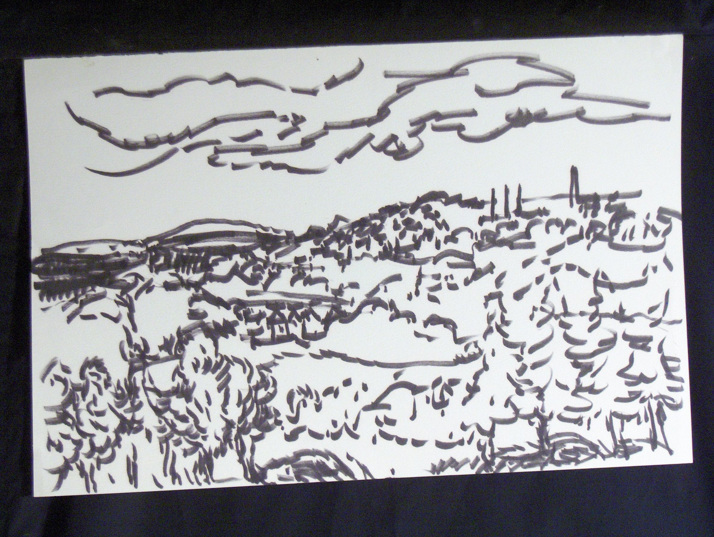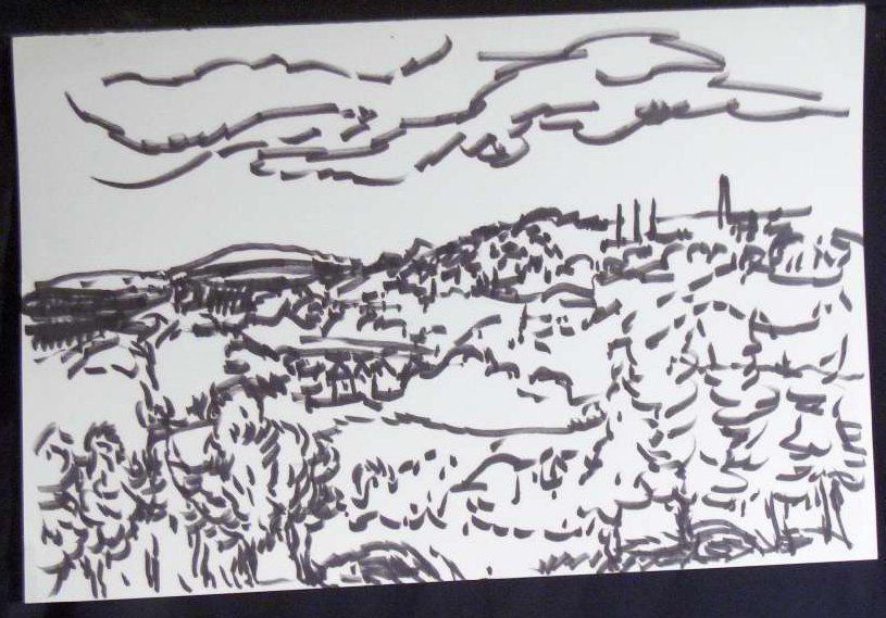 Ink, Paper, Drawing, Zagar, Irwin, Irwin Zagar, Zagar, Abstract, Landscape, Trees, Sky, Ink, Paper, Drawing