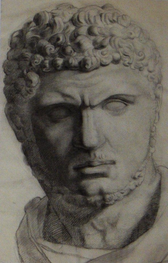 Graphite, Paper, Drawing, Graphite, Paper, Drawing, Men, Heads, Romans, Busts, Statues