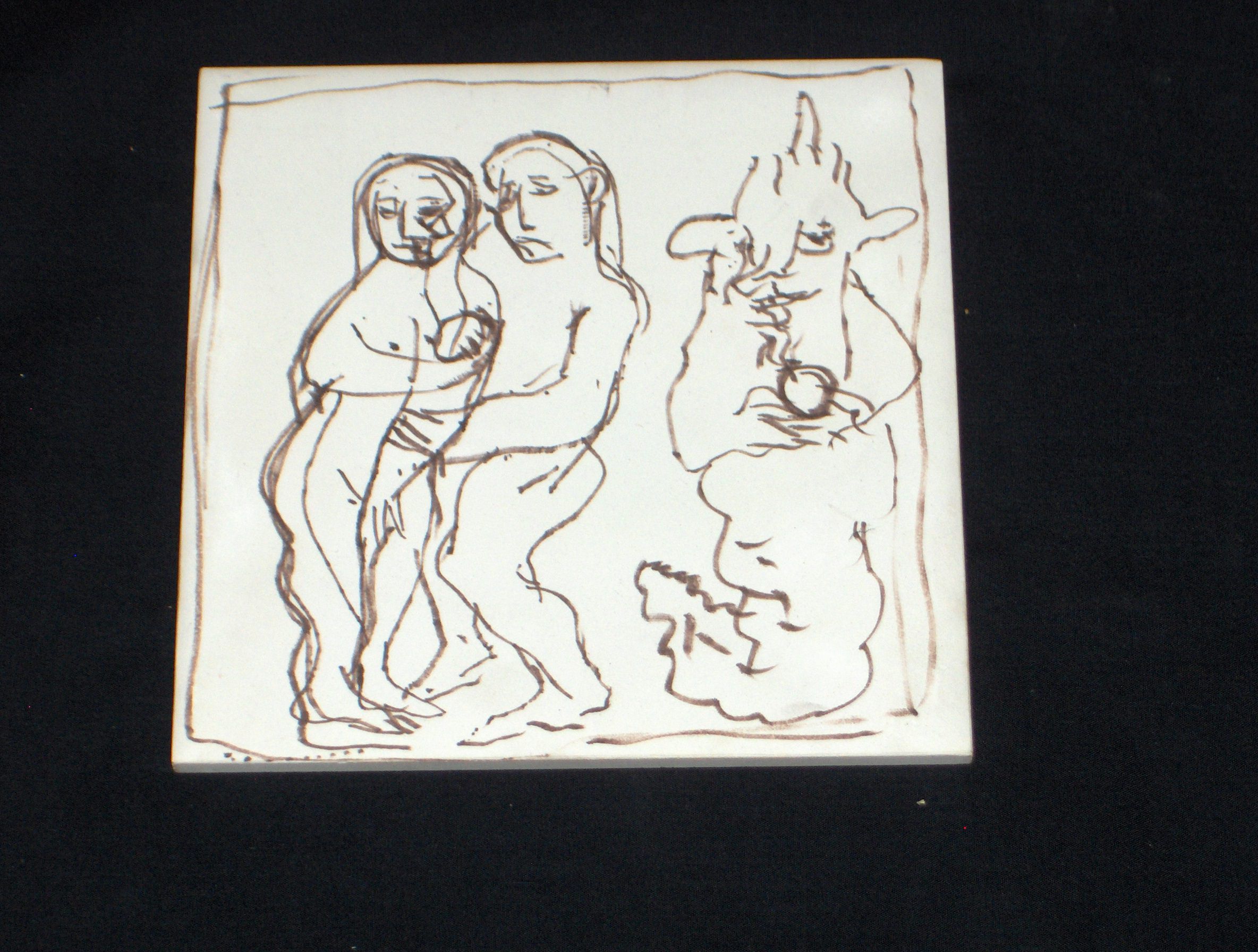 Collected By: Unknown Artist created the piece when he was a monk at Saint Vincent from 1952-68 . He was also a faculty member during this time period. The tile is part of an initial experimental study of mural making for the library mural.