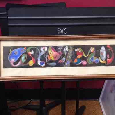 Preliminary drawign and pastel model for a mural installed om the Saint Vincent Monastic courtyard, designed bt Fr. Rene Gracida, O.S.B., now Bishop, and dedicated to Saint Thoman Aquinas, the Angelic Doctor. It included a reflecting pool, and walkways with plantings that invited meditation and reflection. The Aquinas Courtyard is now known as Sebastian's Garden.