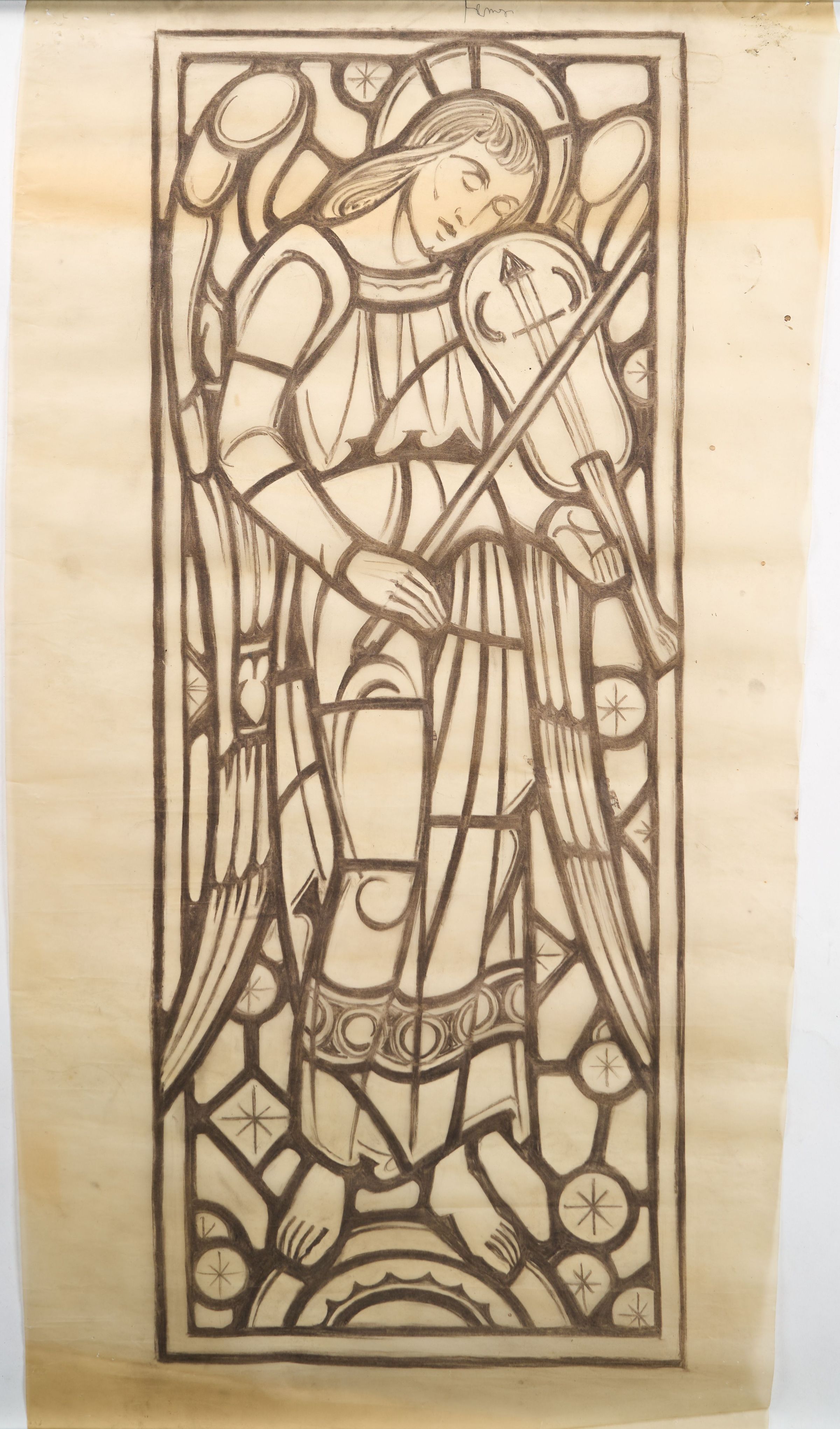 Stained glass scale cartoon. Depicts an angel playing a violin. See 2021.1.607 for full window.Type of Drawing