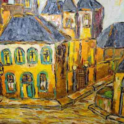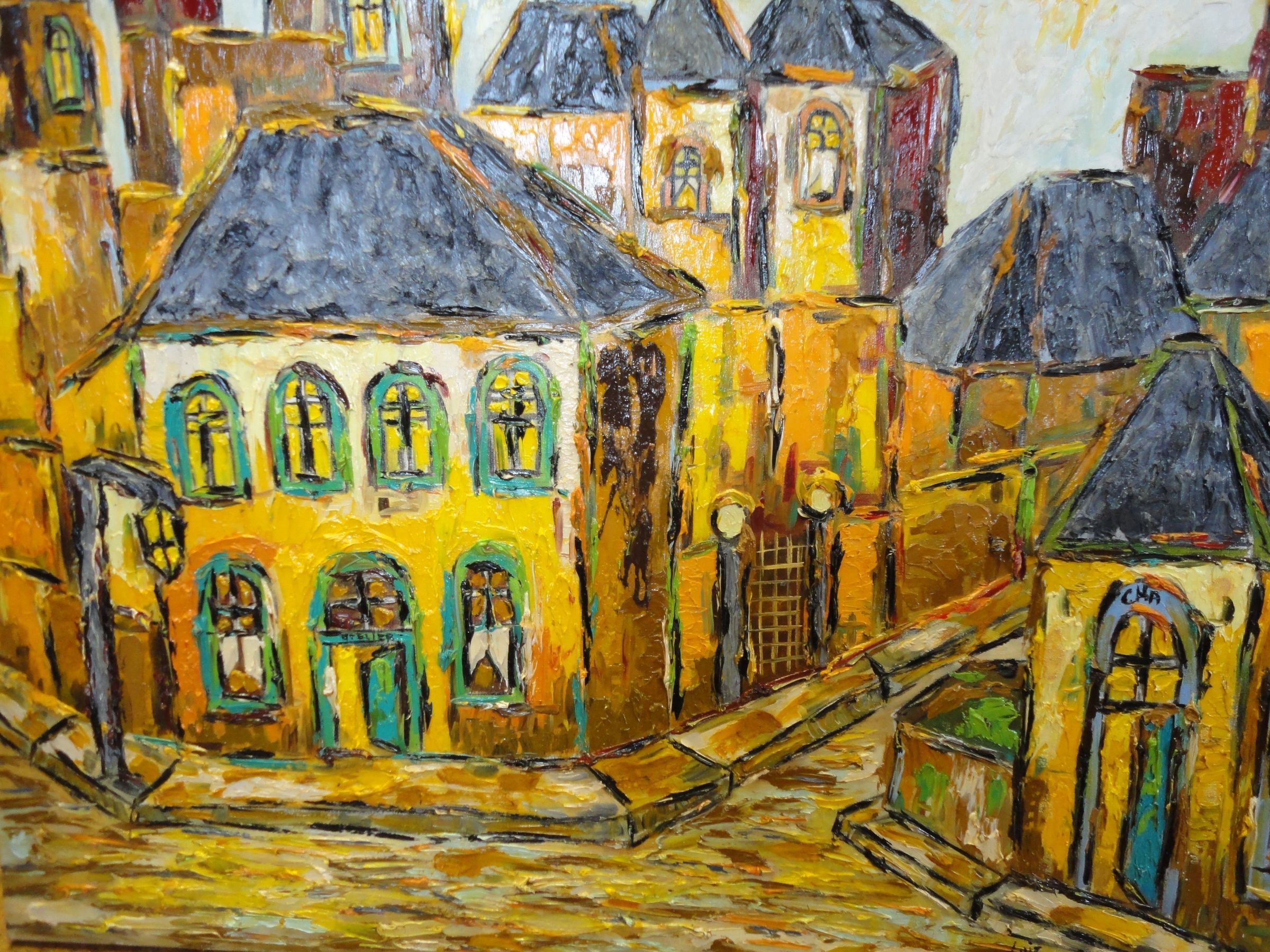 Oil, Painting, Canvas, City, Street, Yellow, Green, Gray, Grey, Charchol, Black, Orange, Brown, Oil, Painting, Canvas, Luiz Fabiano Bhittencourt