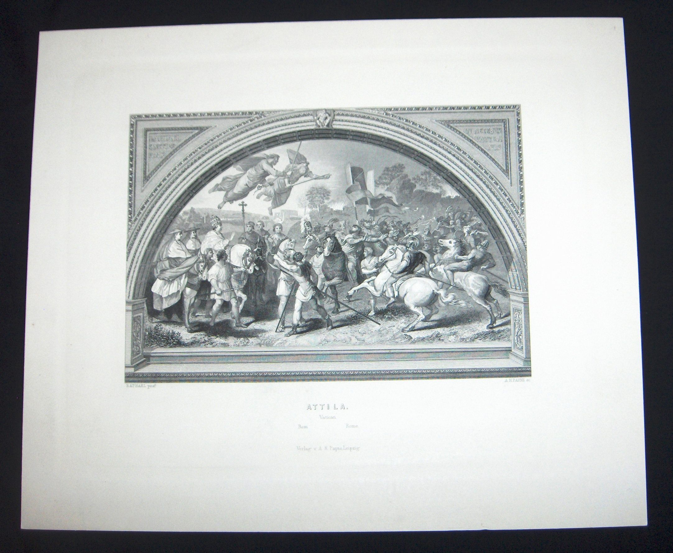 Ink, Paper, Print, Lithograph, H.A Weiske, Raphael, A.H. Payne, Payne, Weiske, Ink, Paper, Print, Lithograph, Attila, Raphael's MasterpiecesDimensions