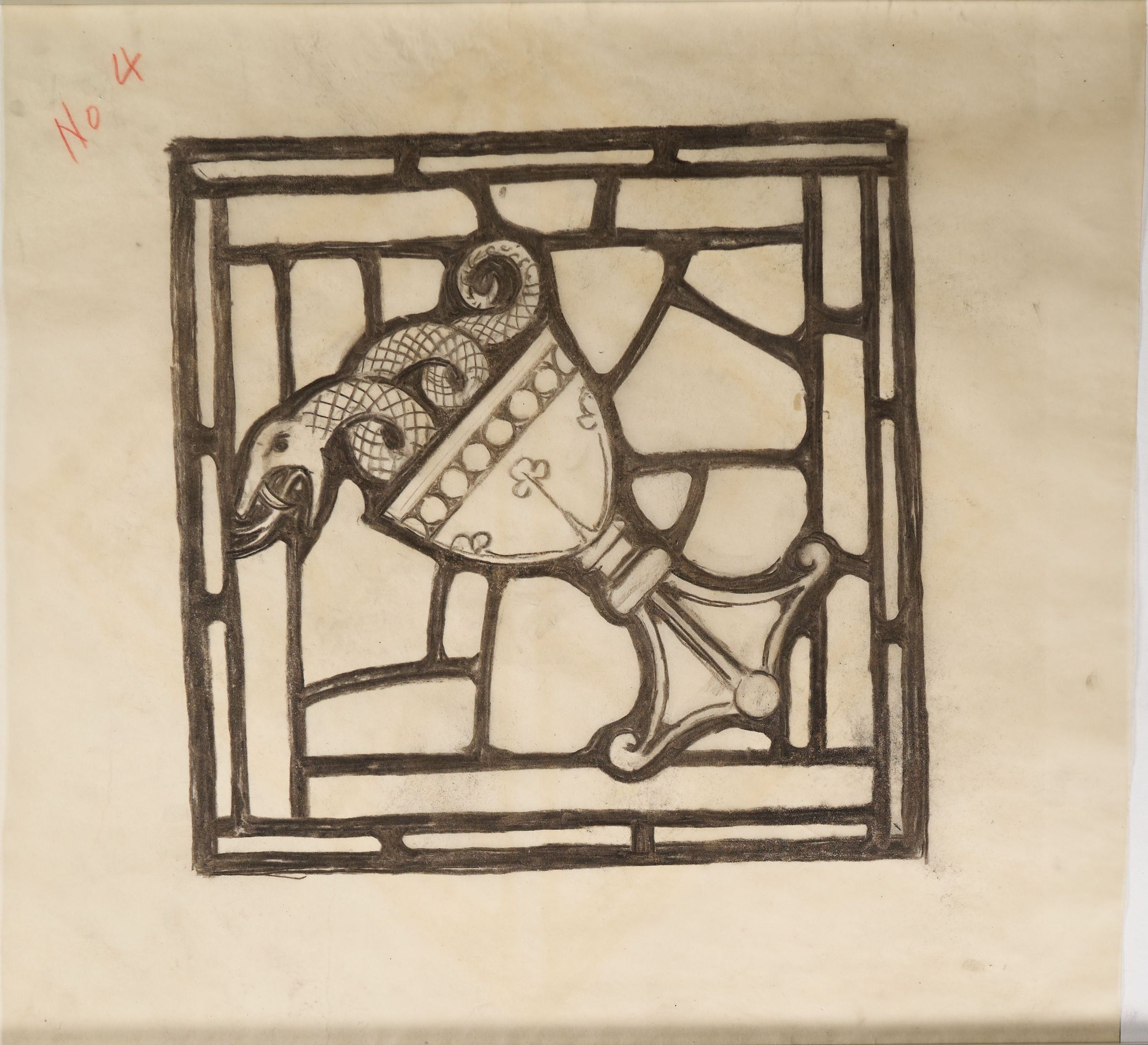 Stained glass scale cartoon, part of rose window at St. Benedict Church, Baltimore, Maryland. Depicts a snake in a chalice, representing St. John the Evangelist. For more information, see "Wheels and Roundels: Stained Glass Windows of Saint Benedict Church, Baltimore, Maryland" by Liz A. Cousins and Rt. Rev. Paschal A. Morlino, O.S.B.Type of Drawing