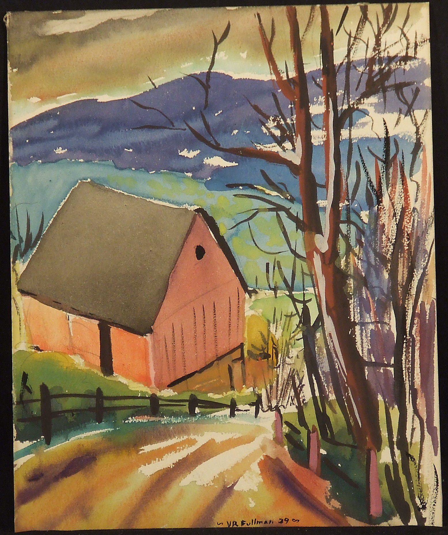 Watercolor, Paper, Painting, Fullman, V.R., Fullman, Watercolor, Paper, Painting, Barn