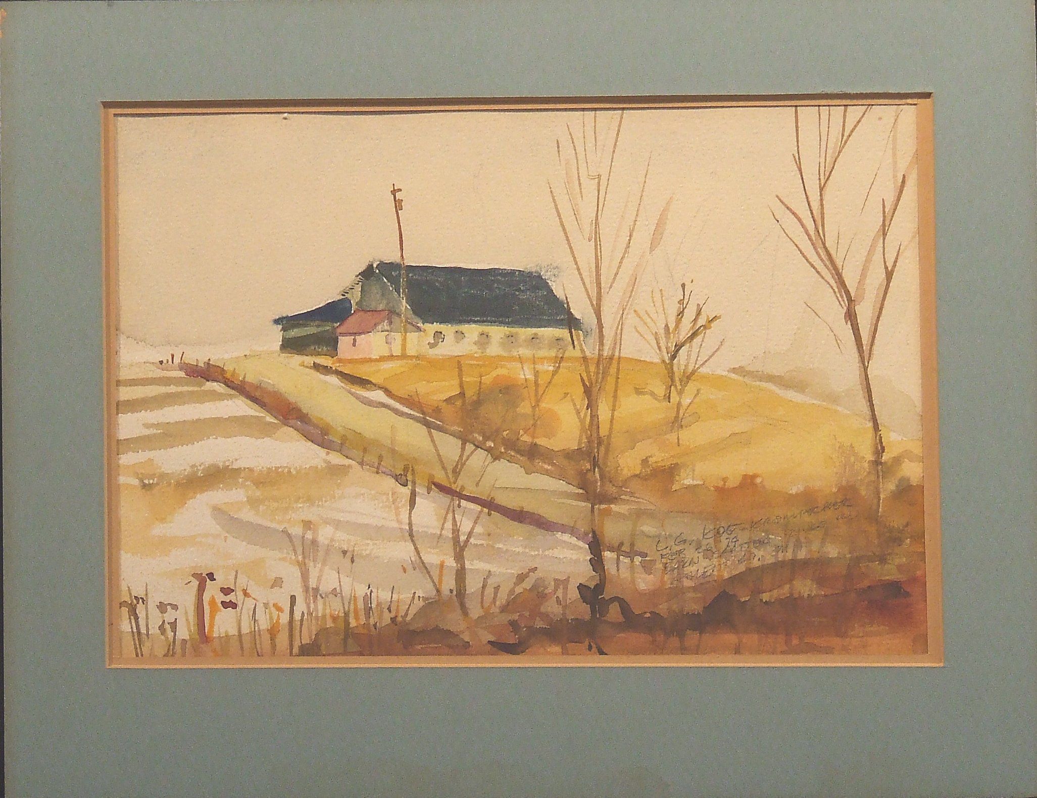 Watercolor, Paper, Painting, Koe-Krompecher, Laszlo G., Koe-Krompecher, Laszlo G. Koe-Krompecher, Laszlo, Watercolor, Paper, Painting, Barn